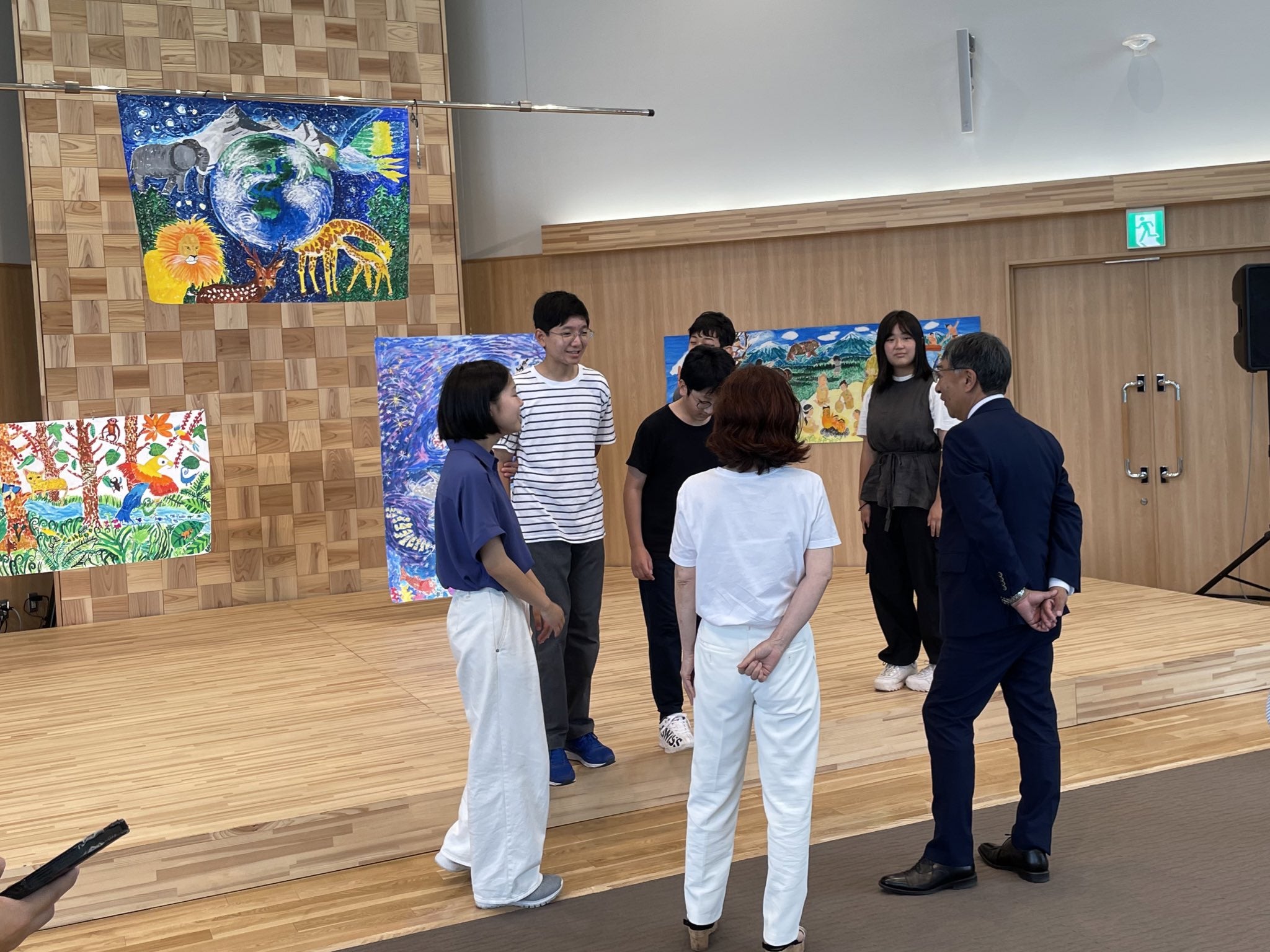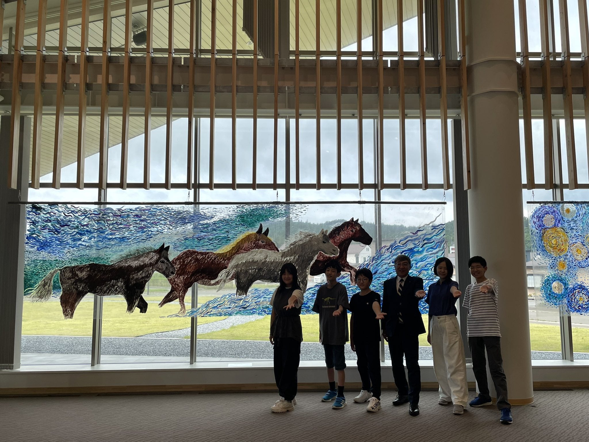その後、寒立馬の迫力ある絵やわんつCAR1号、2号のラッピングの原画の前で写真を撮り、楽しい時間を過ごしました!