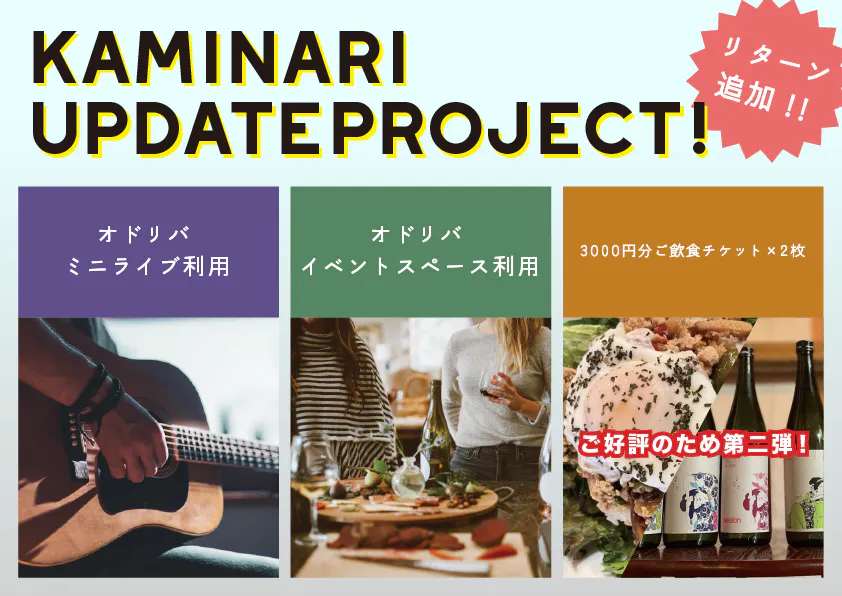 KAMINARIオドリバでミニライブを開催したいアーティスト様向け。本プロジェクトで改装したイベントスペース「オドリバ」をミニライブにご利用いただけます。