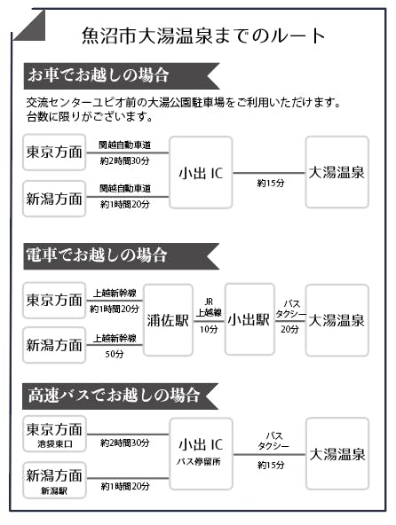※イベント当日は大湯温泉から小出駅までの臨時バスが運行します。