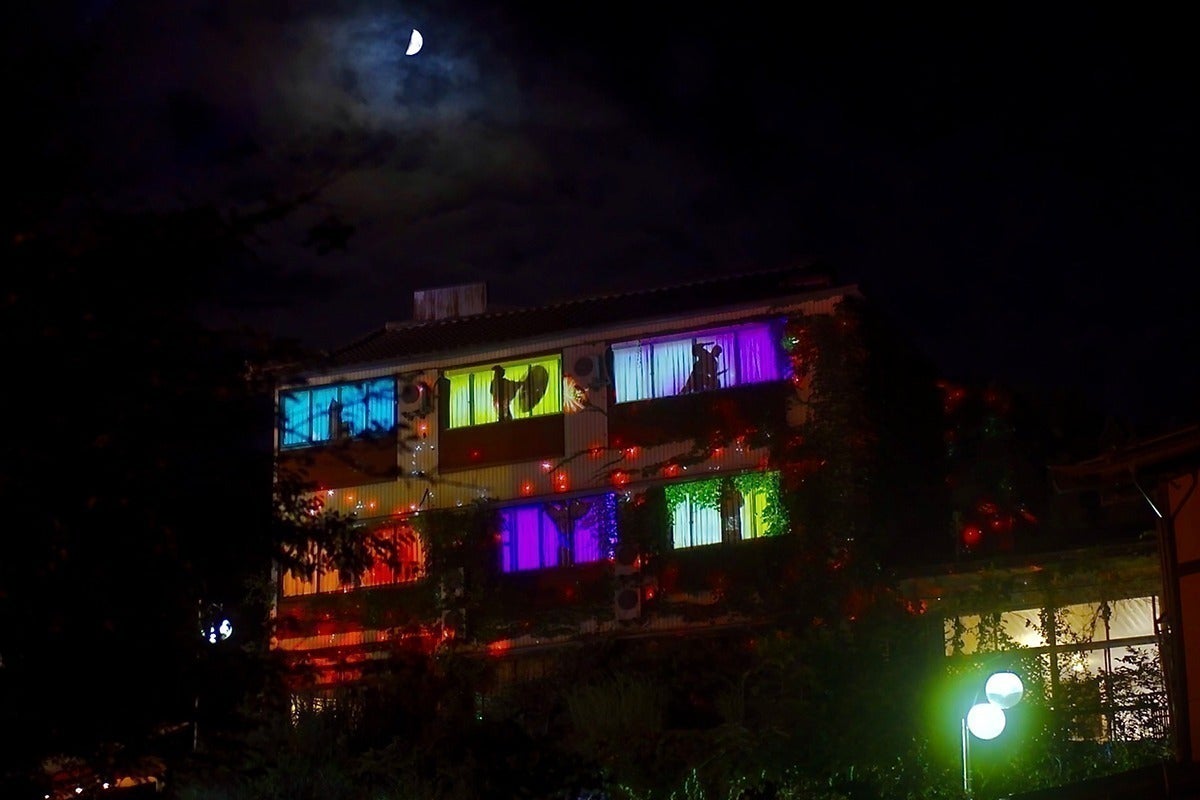 イベント当日は、すでに廃業してしまった旅館の外壁にプロジェクションマッピングを行い、レトロな街並みの至るところでアート作品が展示され、今は使用されていない店舗跡や自然のを舞台にパフォーマンスが行われました。