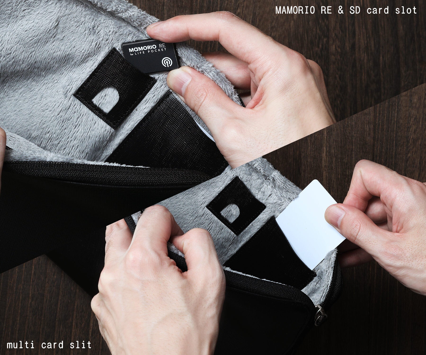 ▼インナーにはカードスリットとMAMORIOポケットを設置