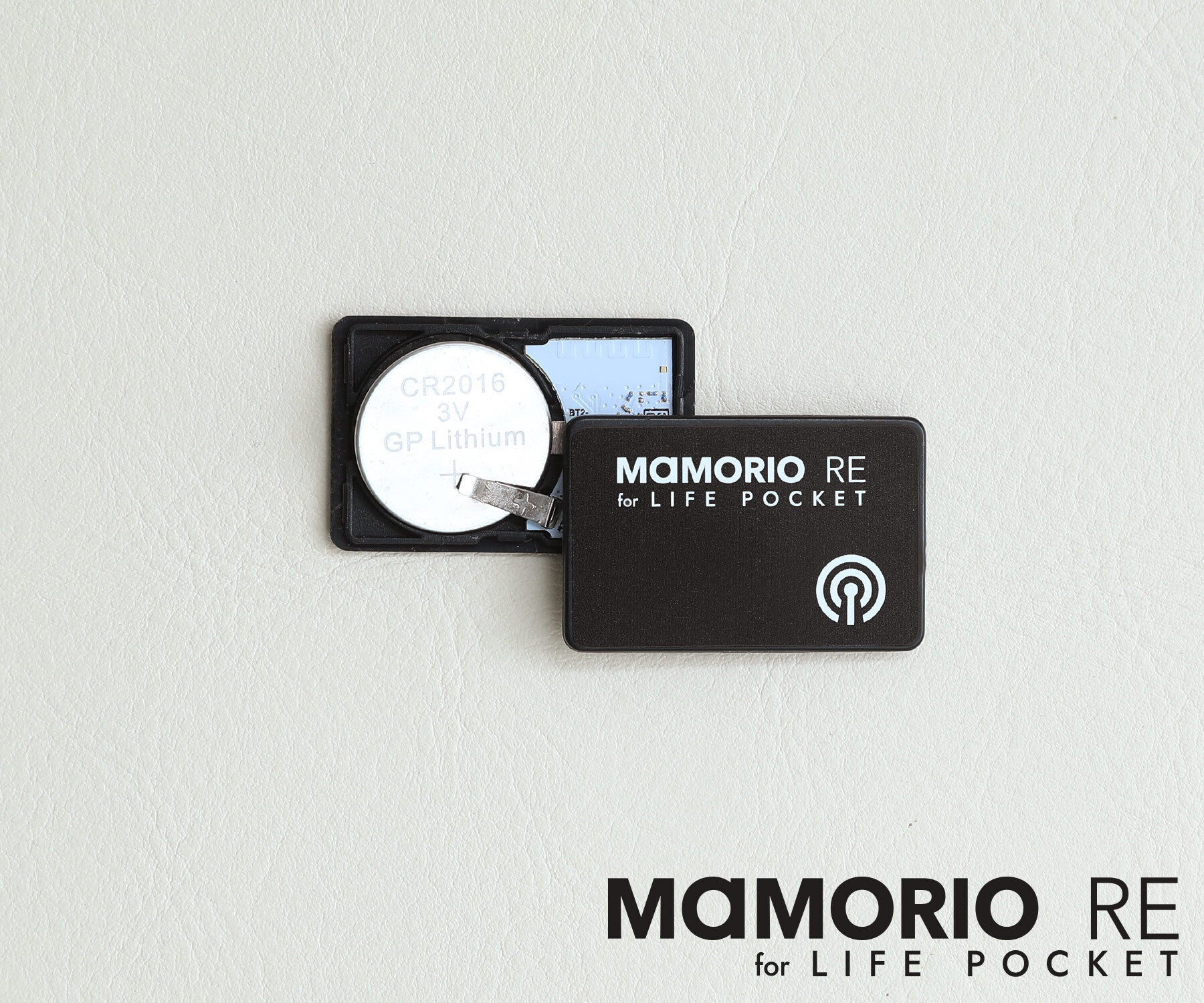 ▼電池交換が可能な紛失防止タグ「MAMORIO RE」をセット
