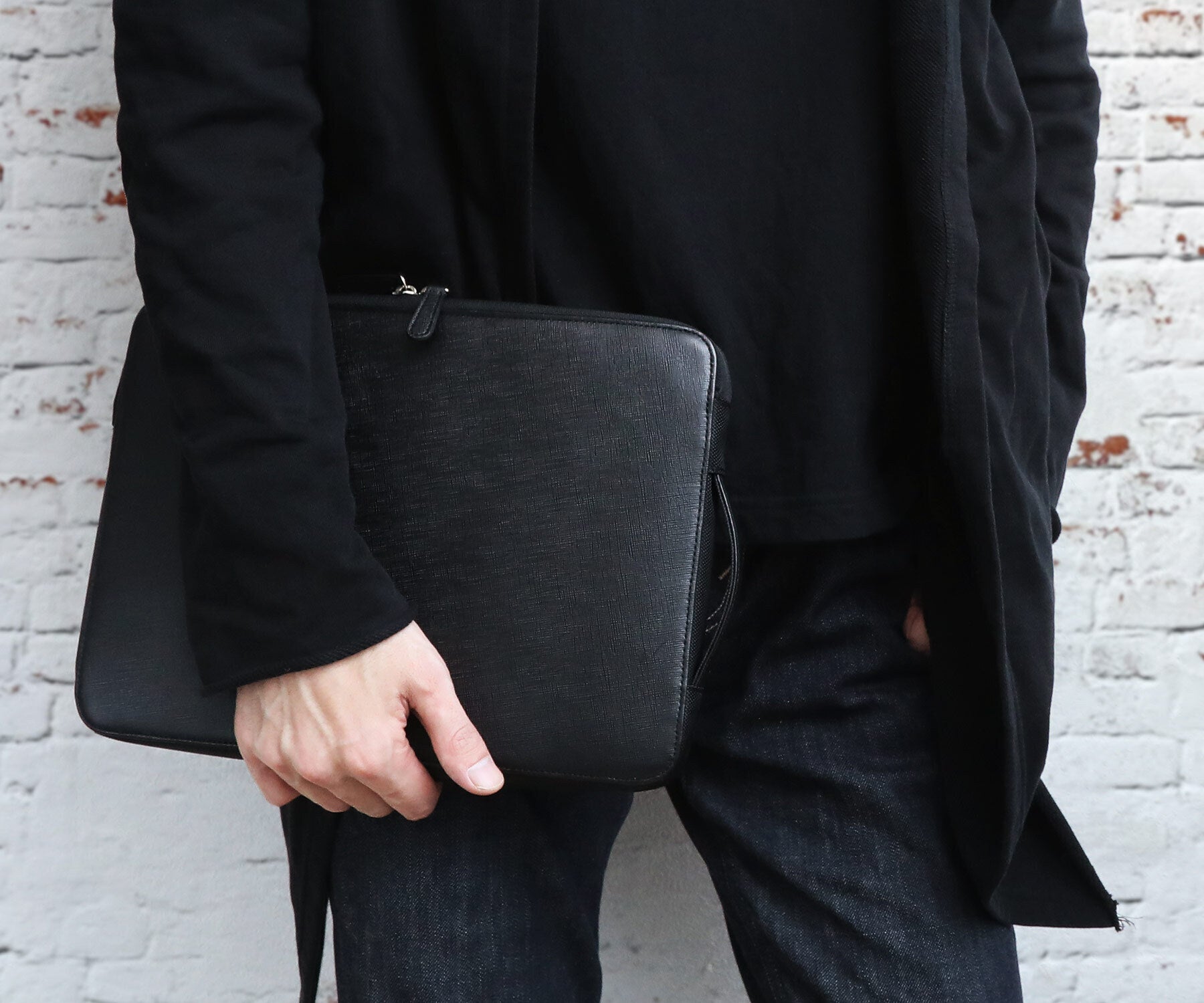 シンプルなデザインは持ち方を選ばずそのままクラッチバッグとして