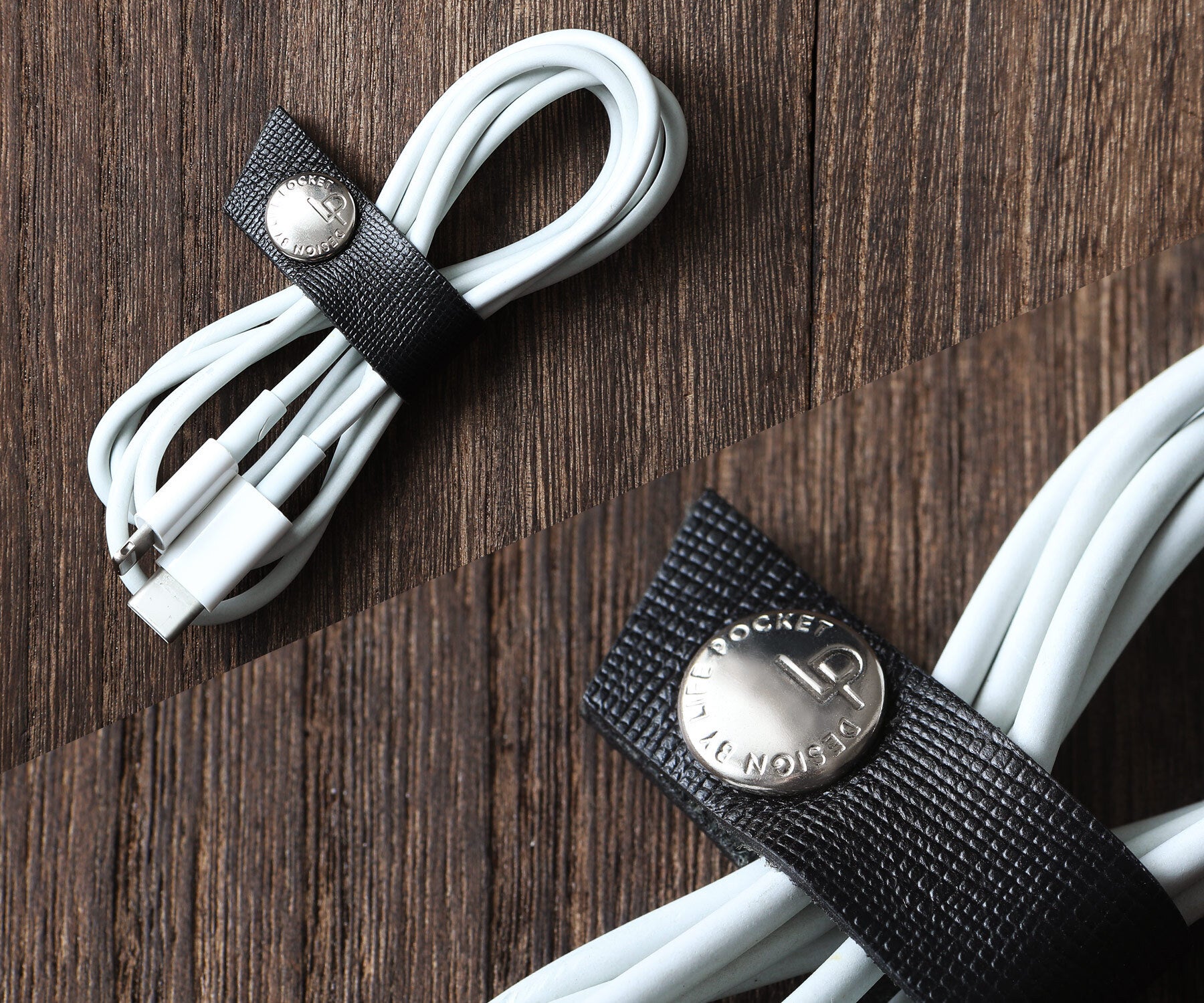 ▼便利な本革クリップで、長いコードも美しく