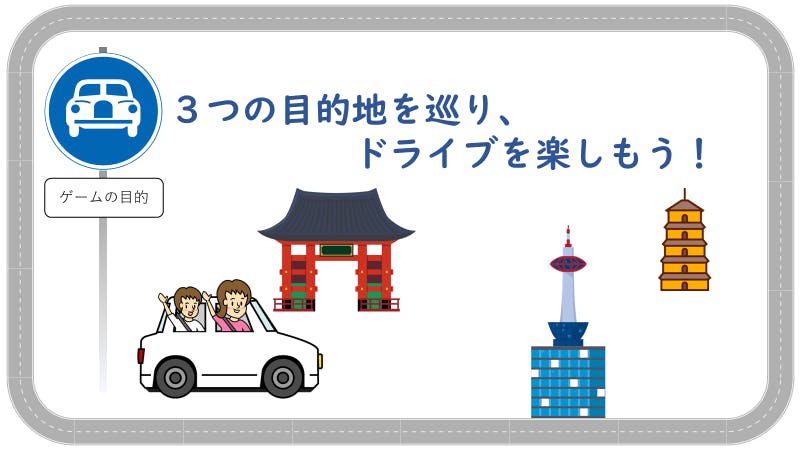 実際のドライブ中はプレイしないようにお願いします。車を停めてから『あちこちドライブ!』をお楽しみください。