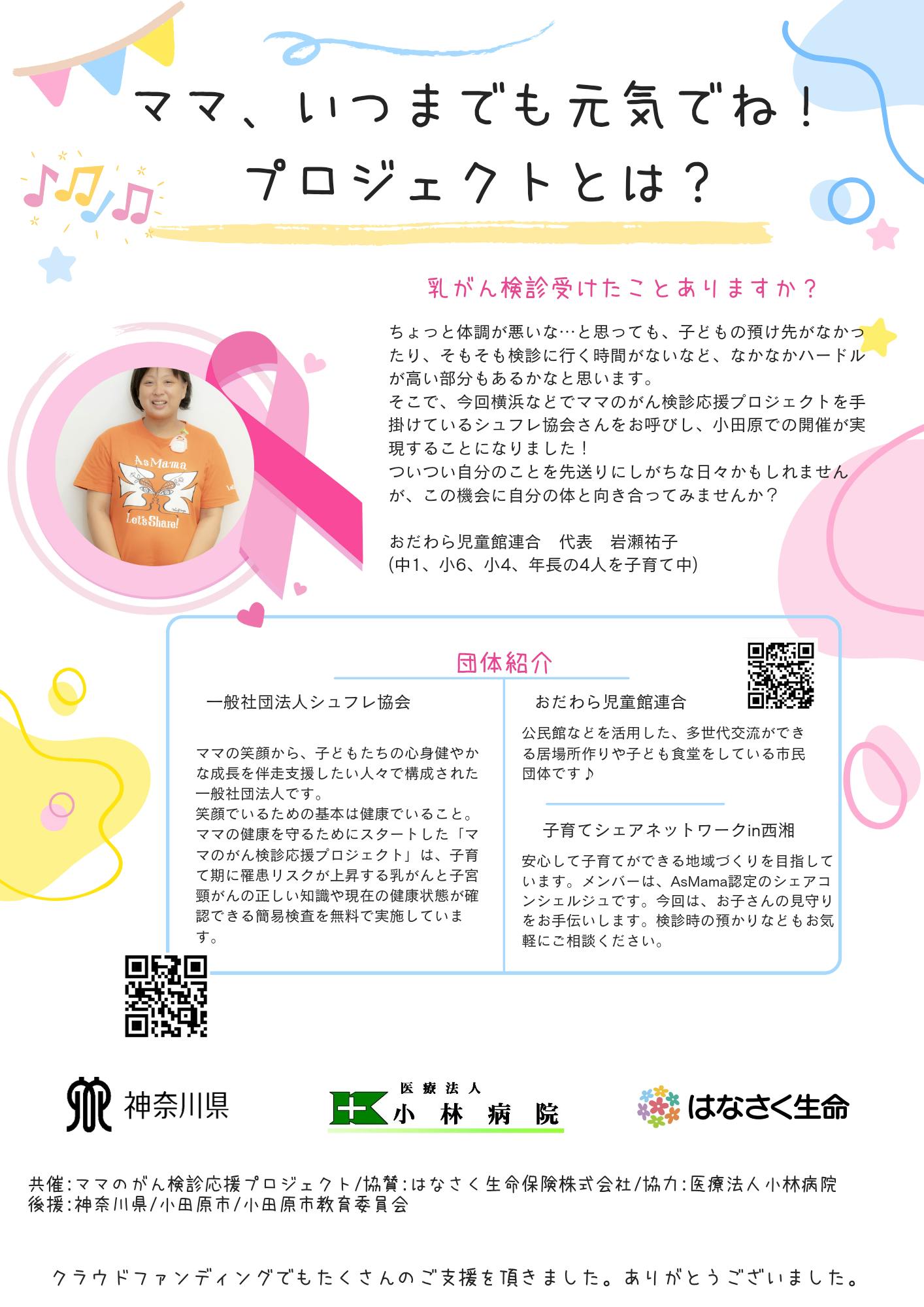 ぜひ小田原のママ達に正しい知識と検診を届けられるように応援いただけたら嬉しいです。もちろん私も全力で応援いたします。