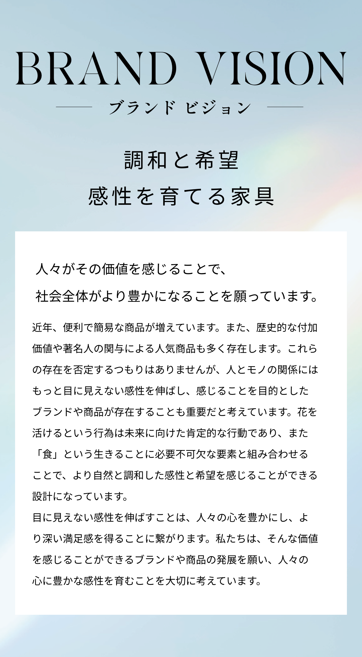 私たちは、そんな新しい生活に対する価値観をお届けしたいと思っています。