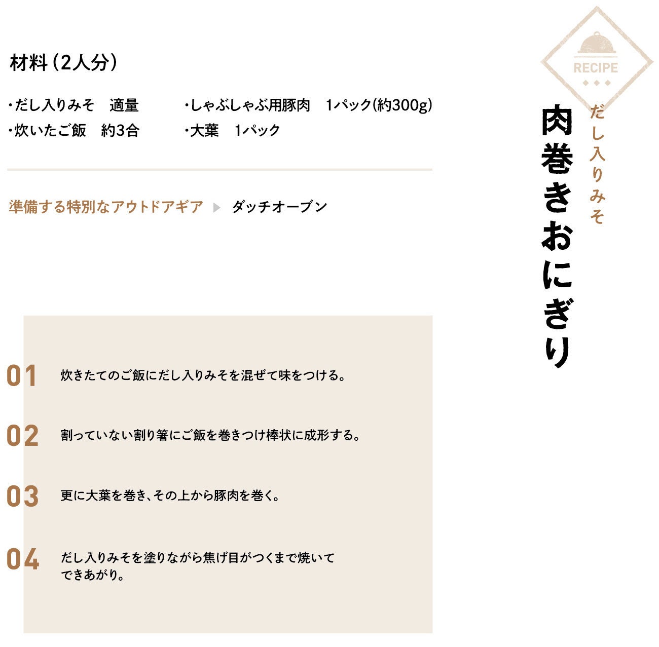 山椒みそと寒こうじを一個ずつ、もしくはしろだし・あまだれ・だし入りみそを一個ずつ包装しており、急なお呼ばれでもパッと持っていけるお手軽なサイズ感。何かと持っていく物が多いキャンプでも嵩張りません。