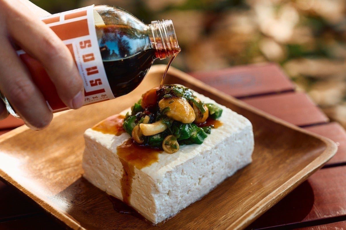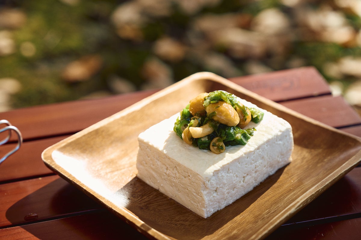 お好みで薬味を冷奴にのせて、あまだれをかけるだけ。とりあえず一品用意したいときや、夏のキャンプにぴったり!おつまみにもおすすめです。