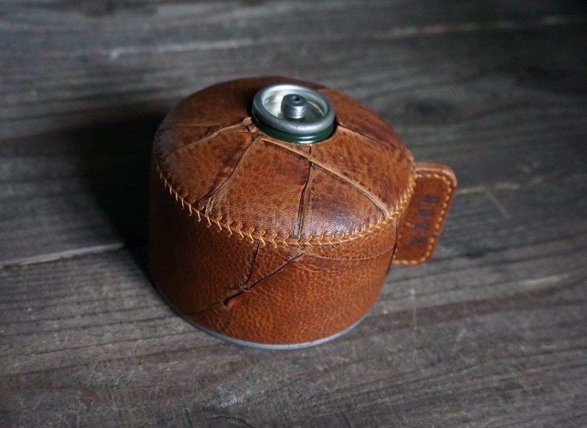 そんなキャンプギアにコダワリを持つ方のため、どんなシーンにおいても馴染むコニャックカラーのレザーを使用したガスカードリッジカバーを特別にご用意しました。