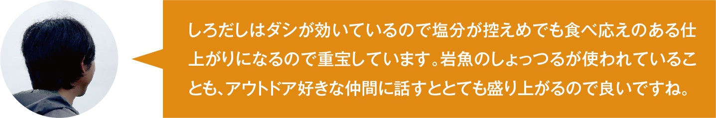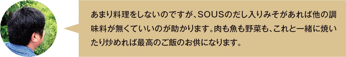 味噌醤油もアウトドアも、その土地ならではの気候や環境によって、味や楽しみ方は千差万別だと思います。秋田で生まれた「SOUS」を通じて、秋田の自然を感じていただけますと幸いです。今年の夏キャンプの際は、SOUSを使った料理の美味しさ、そして楽しさを是非一度お試しください!