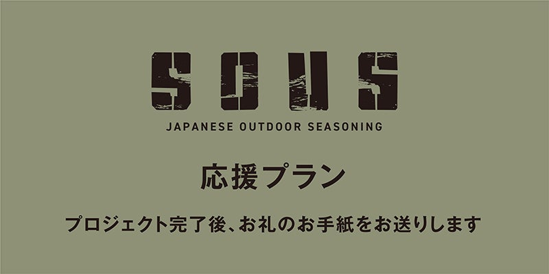 アウトドアをもっと手軽に美味しく、楽しくする「和イルド調味料 SOUS」応援のほど宜しくお願いいたします!
