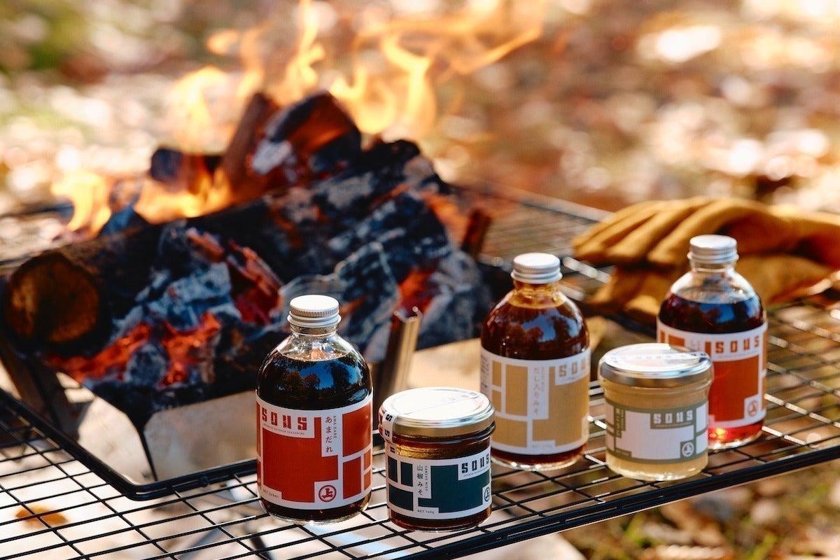 ドバっと塗って、ガバっと混ぜて、それだけで様になり、かつウマい。そんな「和イルド調味料 SOUSシリーズ」は、家族や友人たちとのキャンプやBBQ等のアウトドア体験から生まれました。