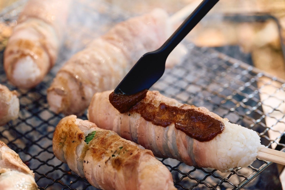 おすすめの使い方は、山椒みそを塗った食材を焚き火で直接炙ること。「バチバチバチ!」という焼き上がる音と、香ばしく味噌が焼ける香り、そして後追いで薫る爽やかな山椒の芳香は、是非とも一度体感していただきたいと思います。