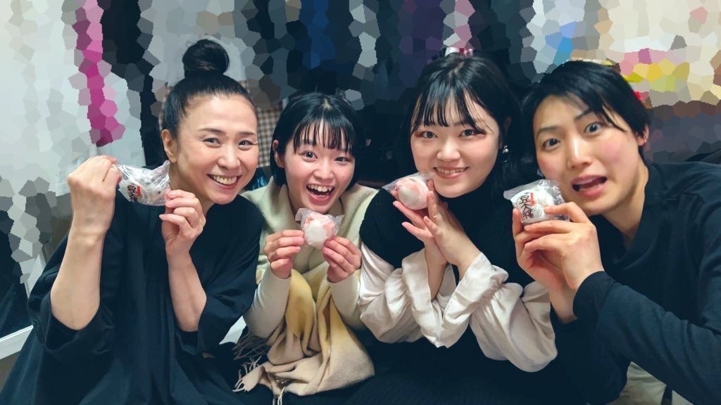 山﨑千惠子一座 劇団員写真:公演終わりお客様からいただいた差し入れと一緒に☆ 有難うございます!