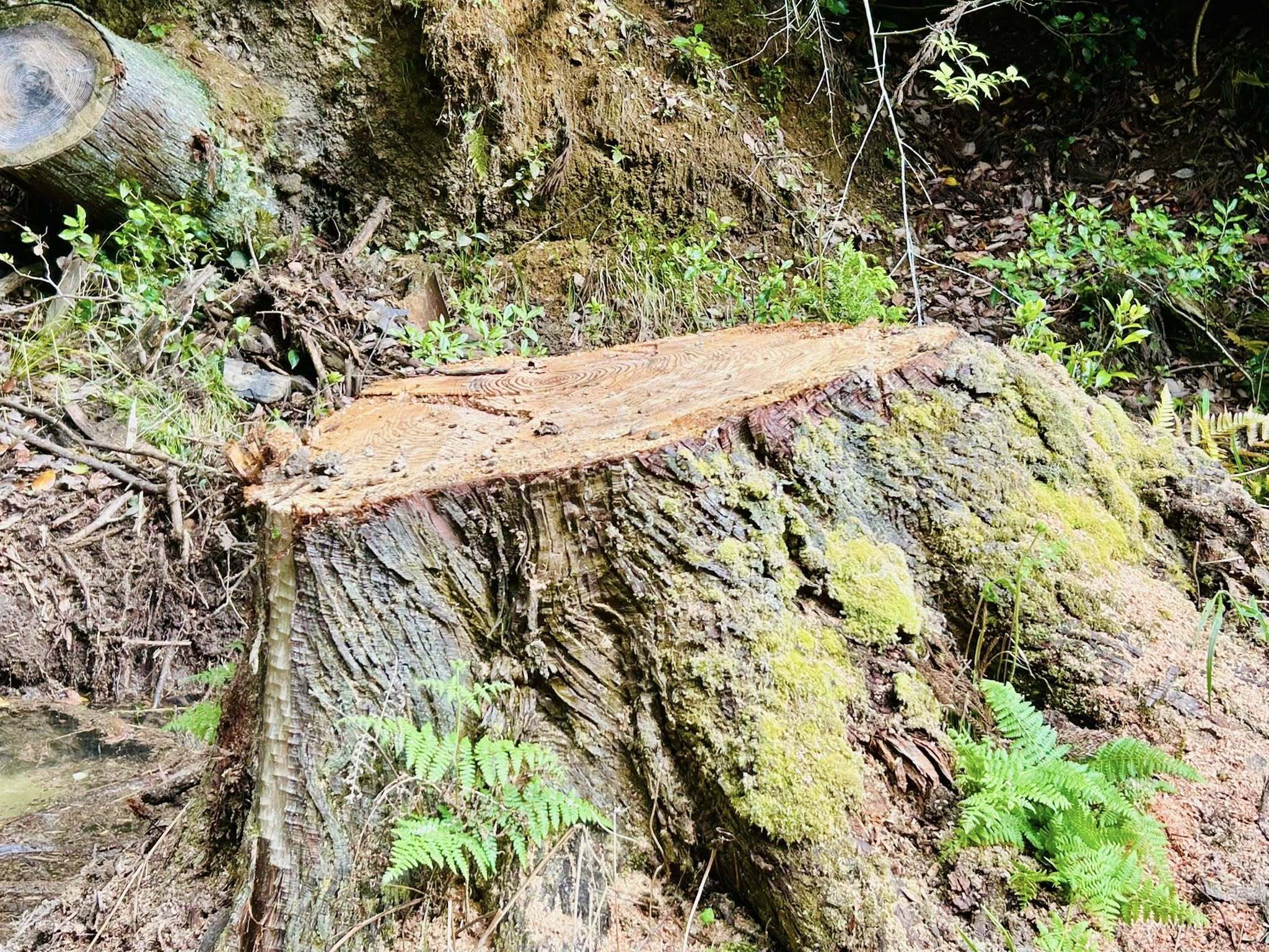 まだ泥水の水たまりに過ぎませんが、ここが透明で綺麗な谷水の水風呂になる事を目指して!杉の根っこで瞑想椅子も作ります。