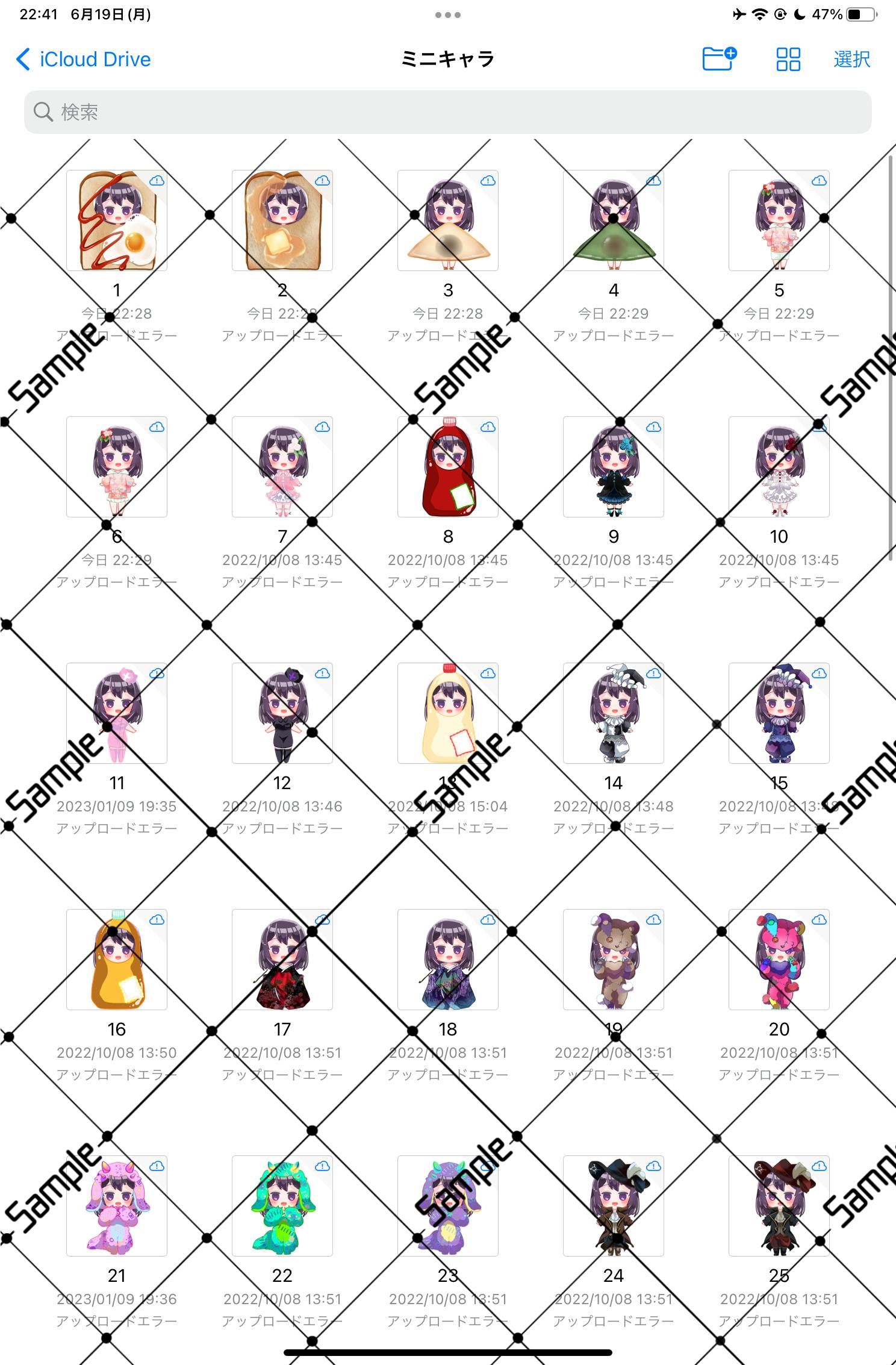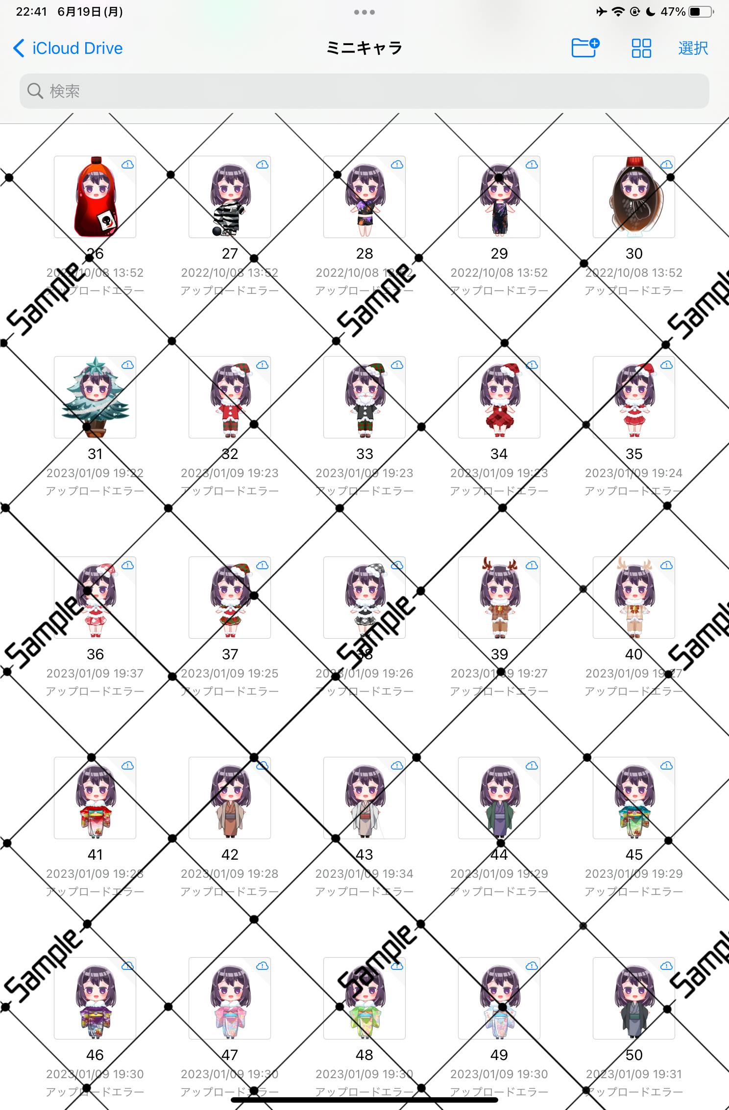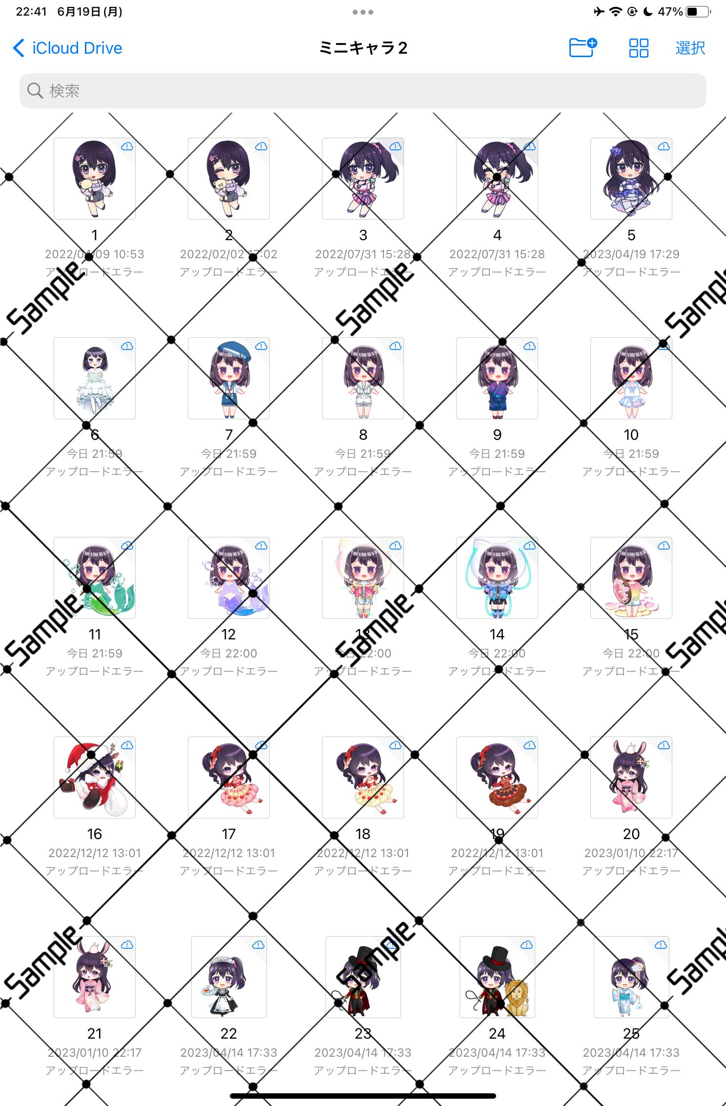 こちらは今までのミニキャラの中からお好きなデザインのアクキーが6個選べます。