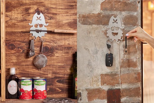 髭の部分は4本のフックがあるのでお玉や計量スプーンなどのキッチングッズが掛けられる、遊び心に溢れた逸品です。また車や家の鍵、ネックレスなどを掛け置きするキーフックとしてもご利用いただけます。