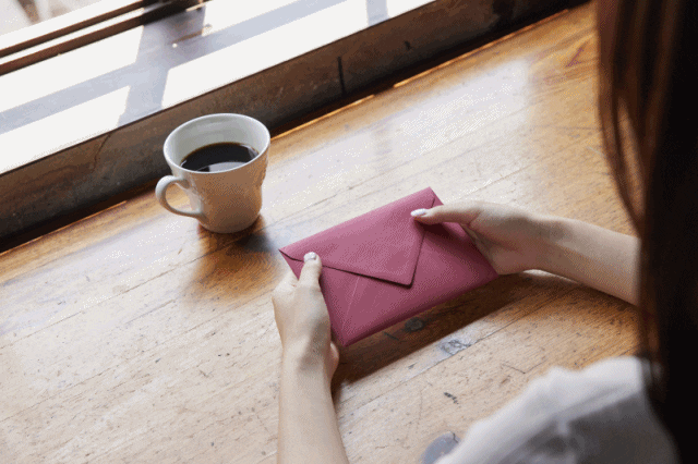 そこで、祖母が大切にしていたグリーティングカードを封筒に入れて送る商品を開発することにしました。郵便料金は低く抑えられ、色付きの封筒がギフト包装となりました。
