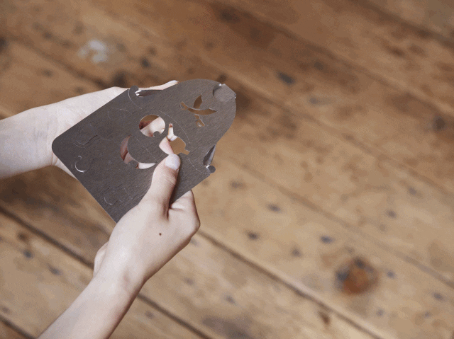 組み立て式なのでアウトドアでも使え、そしてはがきサイズなのでプレゼントにもおススメ。ドイツ製のスチールを使用し、世界遺産の「ツォルフェアアイン炭鉱業遺産群」の博物館やドイツ国内のミュージアムでも販売され、絶大な人気を誇るアイテムです。