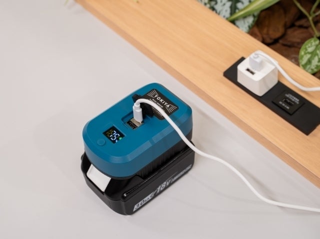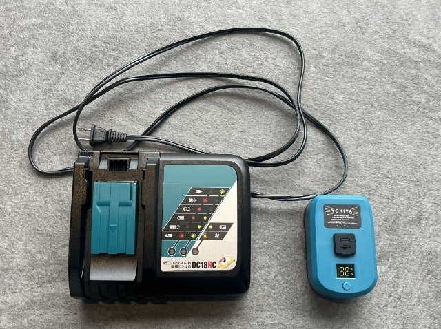 タイプCケーブルを採用したことで利便性もUPしました。例えば電源の無い屋外でもお持ちのモバイルバッテリー(60W以上)を使えばマキタバッテリーの充電が可能です。