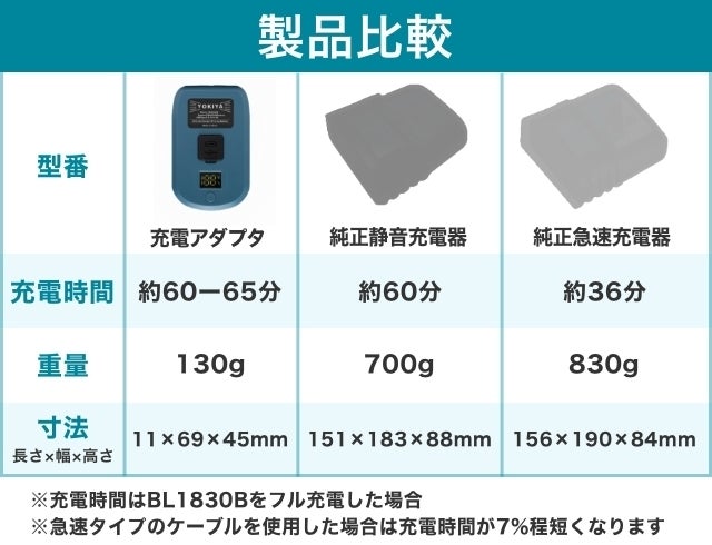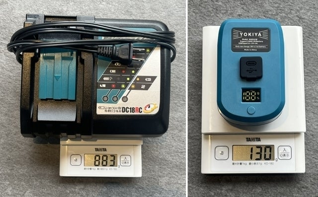 一般的なマキタ充電器と大きさを比較。