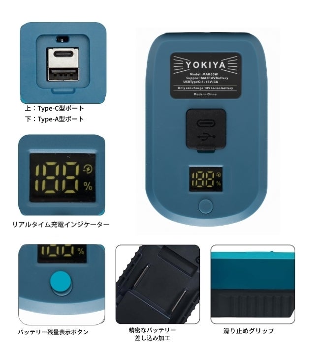 YOKIYA マキタ18V専用 バッテリー互換充電アダプタ
