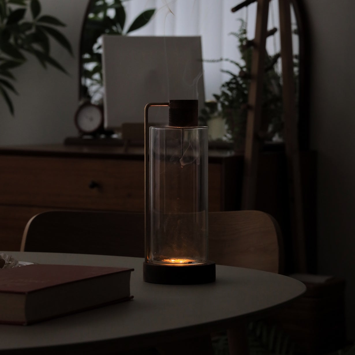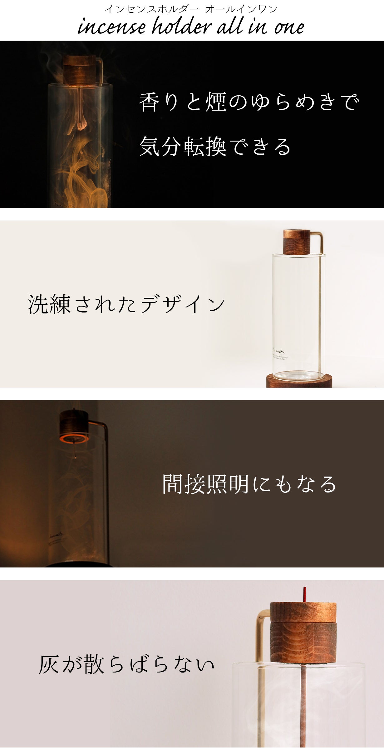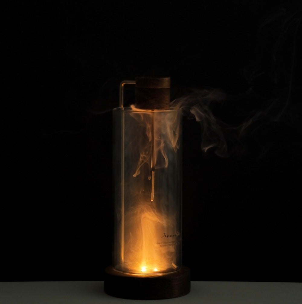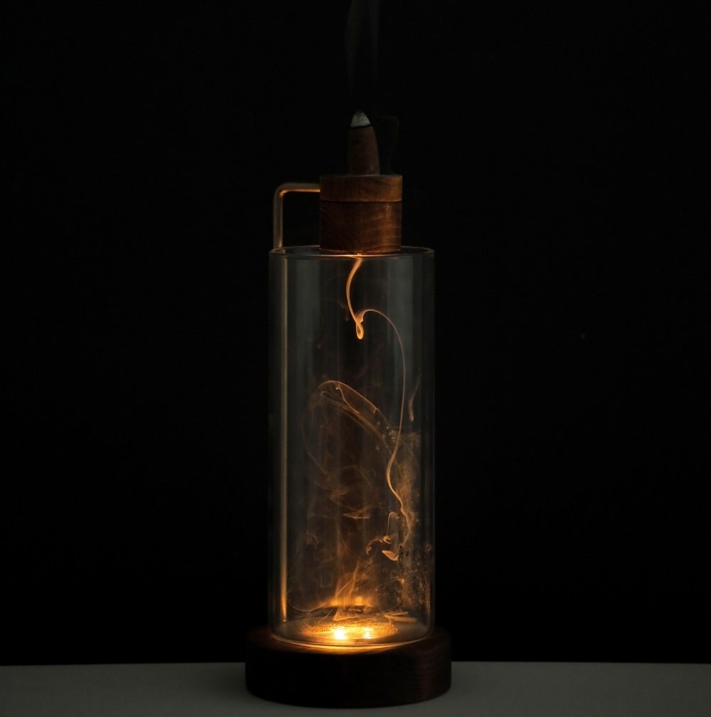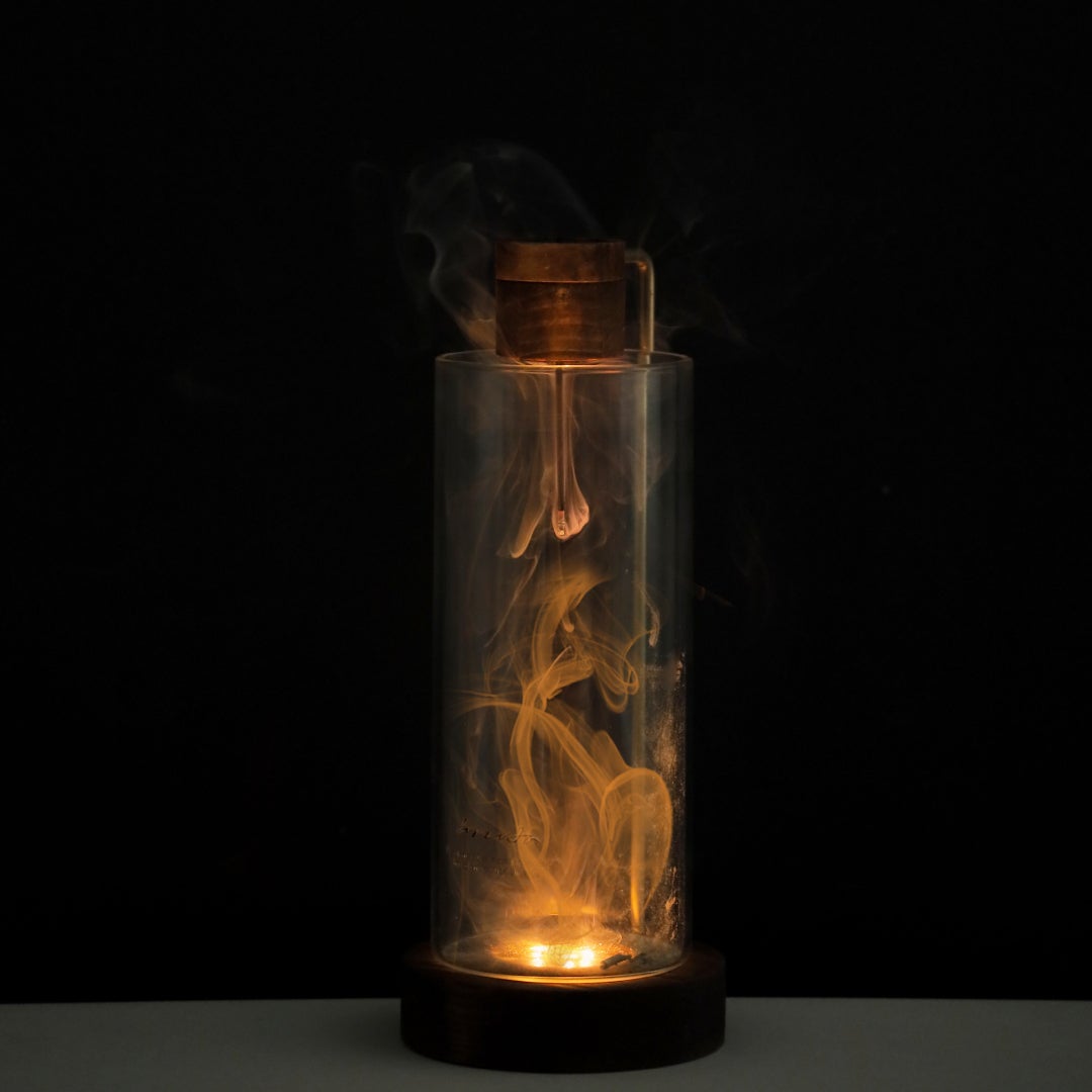 【インセンスホルダー オールインワン 】は、その煙をあえてガラスの中に入れて、鑑賞できる仕組みになっています。