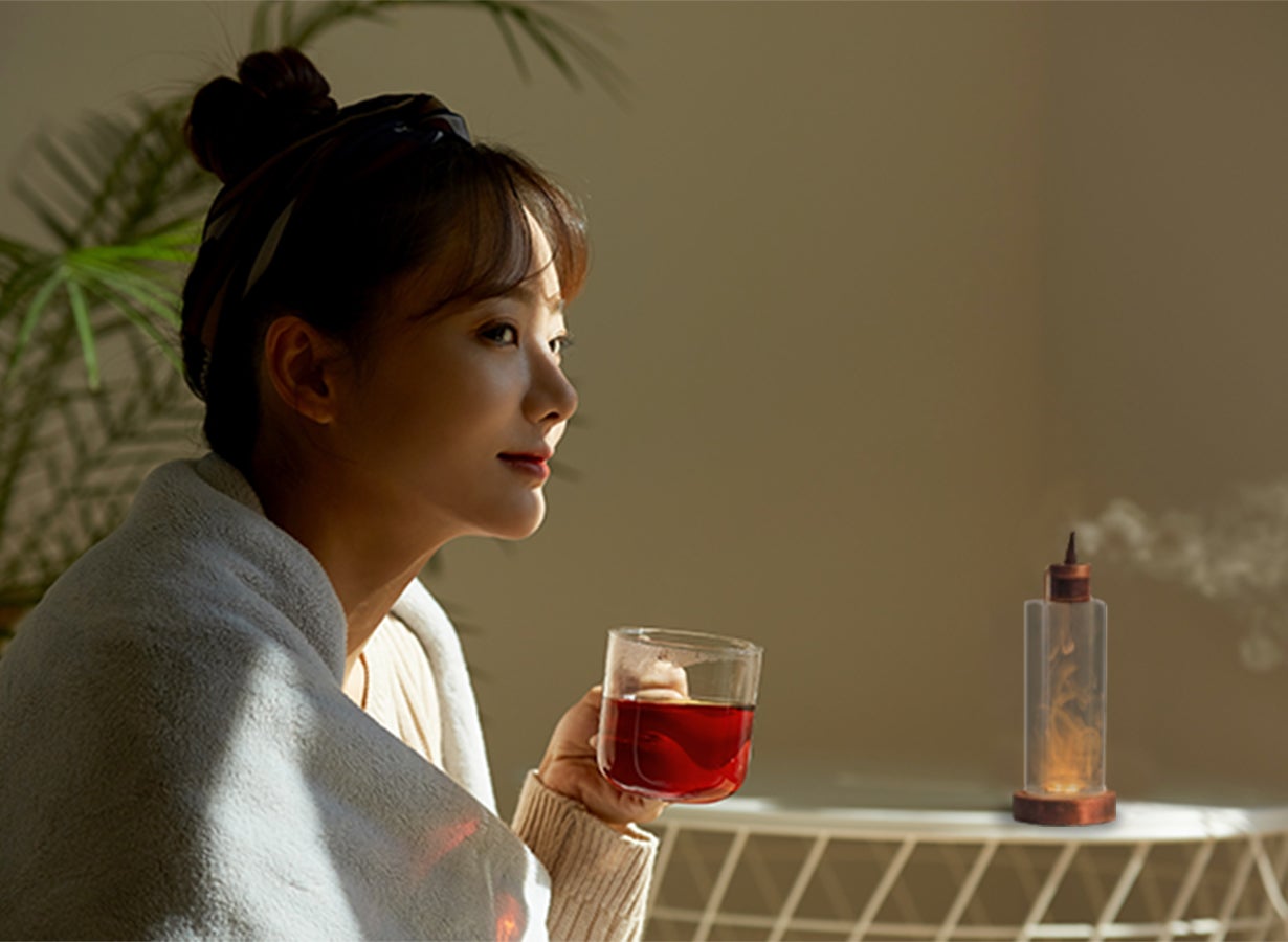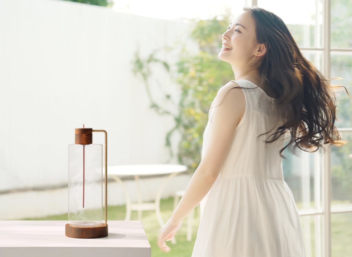 呼吸を深くして良い香りを胸いっぱいに吸い込みながら、煙が揺らめく姿を眺めていると、「1/fゆらぎ」で次第に心穏やかに。