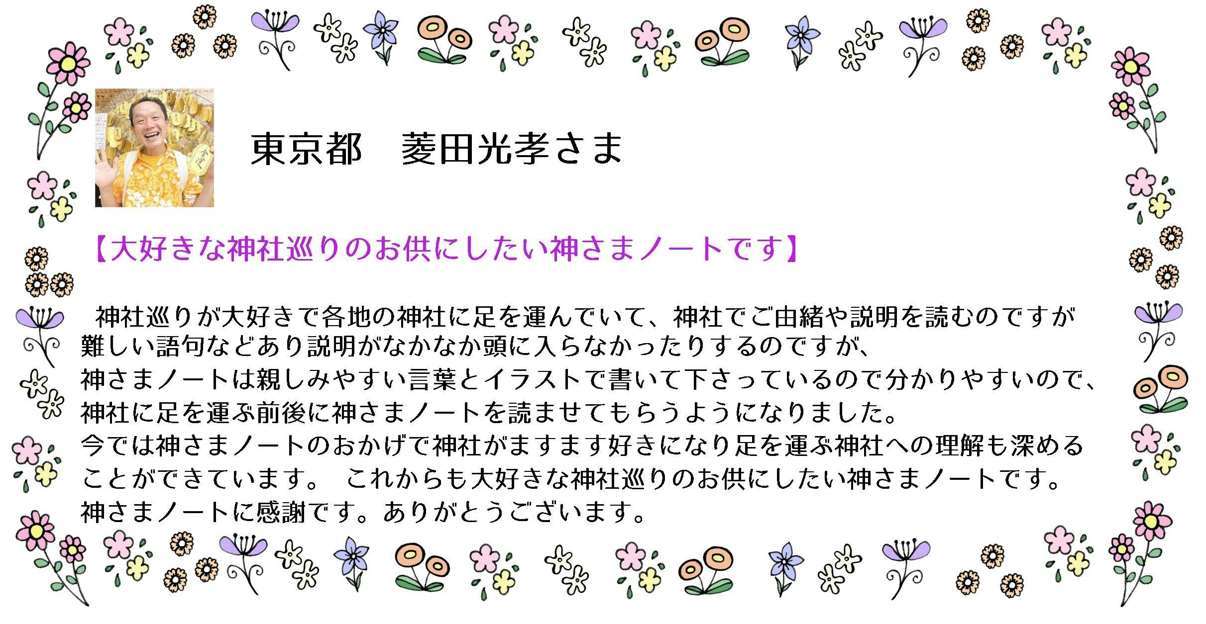 神さまノート5に掲載予定の伊豆美神社(東京都狛江市)の小町宮司様より応援メッセージを頂戴しました。