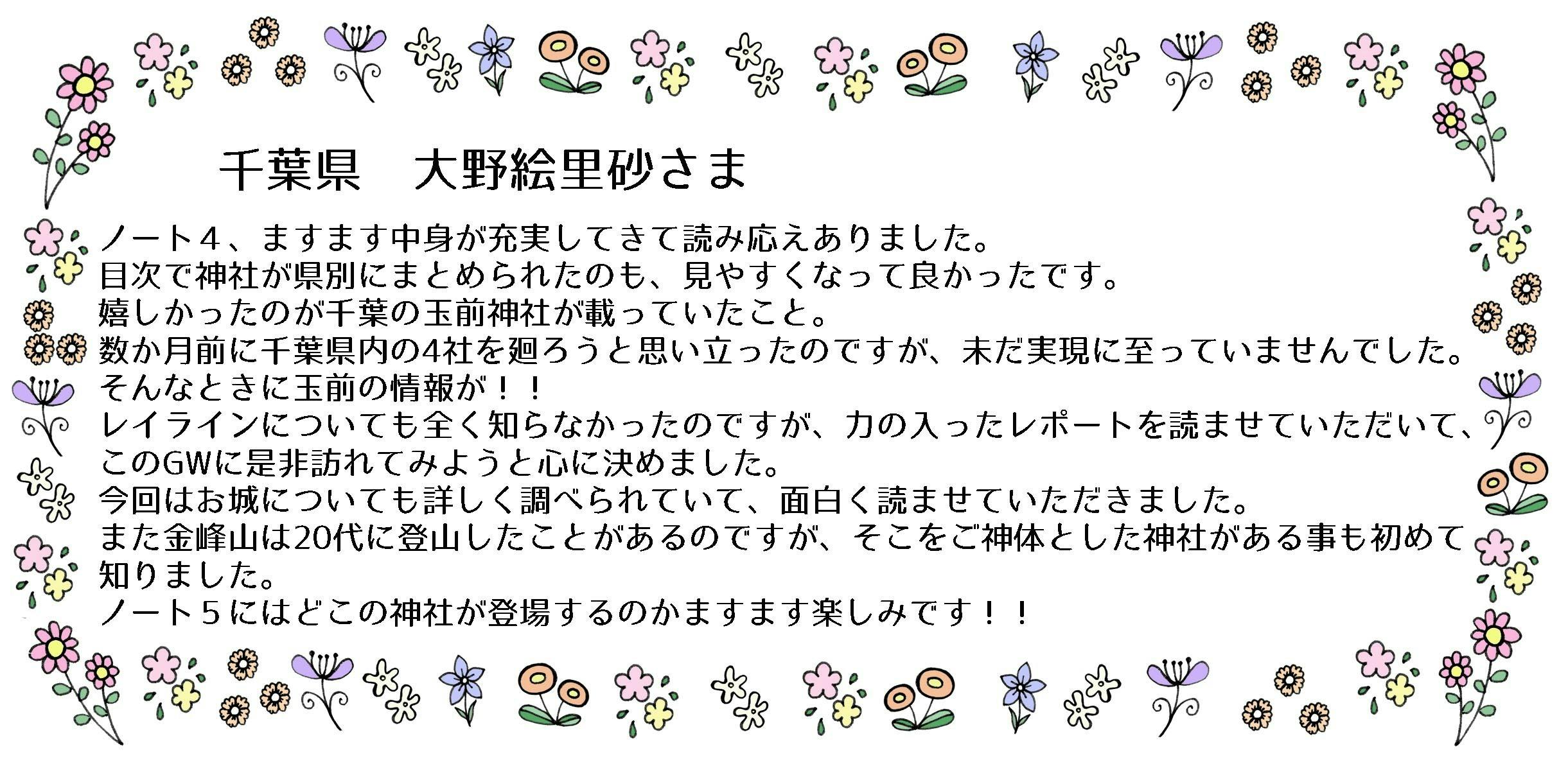 こちらこそありがとうございました。 まだ時間が取れないですが、神さまノート5をもって出かける日を 楽しみにしています。 レポートも待っています。