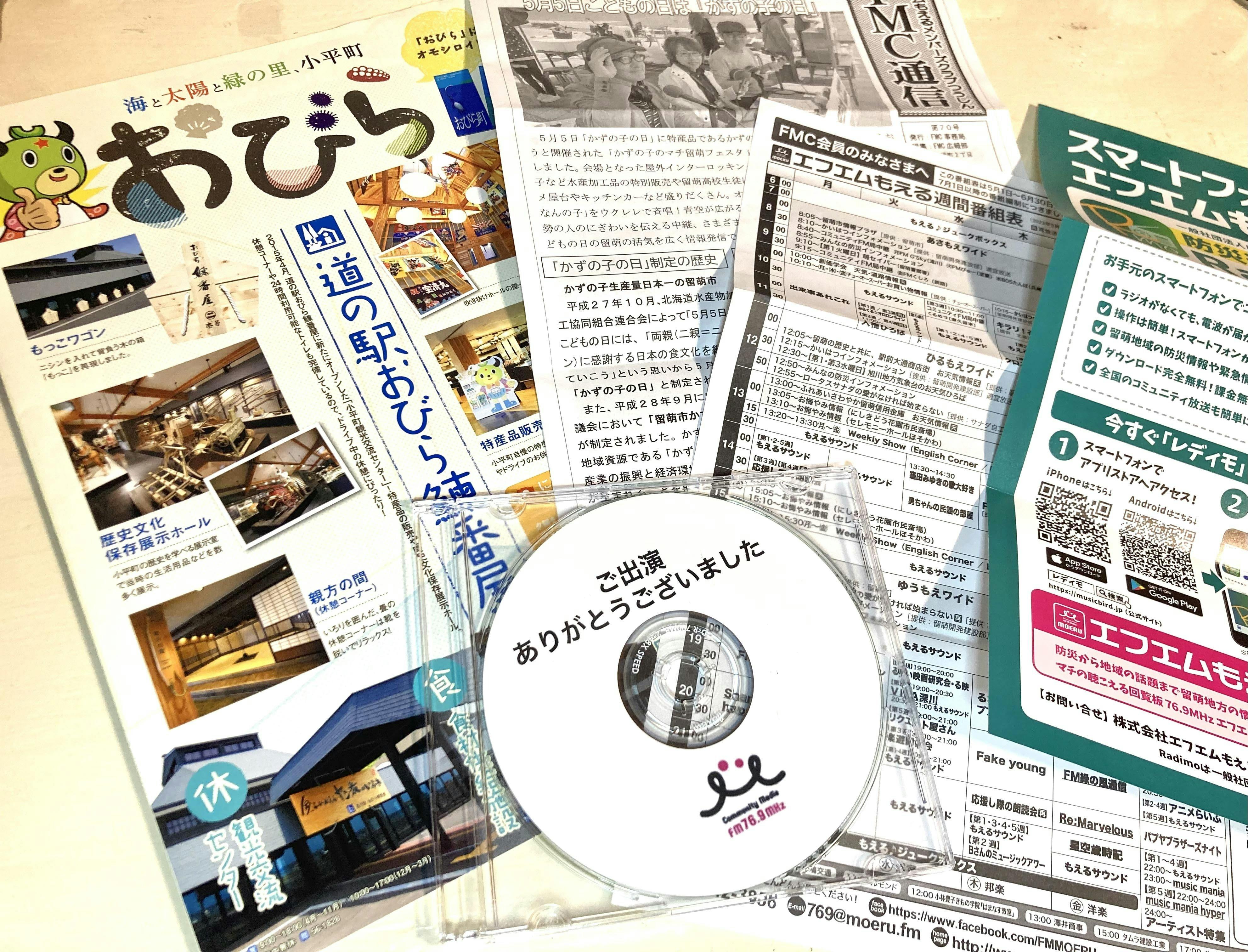 一緒にエフエムもえる様のフライヤーや、夫の出身地小平町(おびらちょう)のグルメ満載のフライヤーも入ってました。