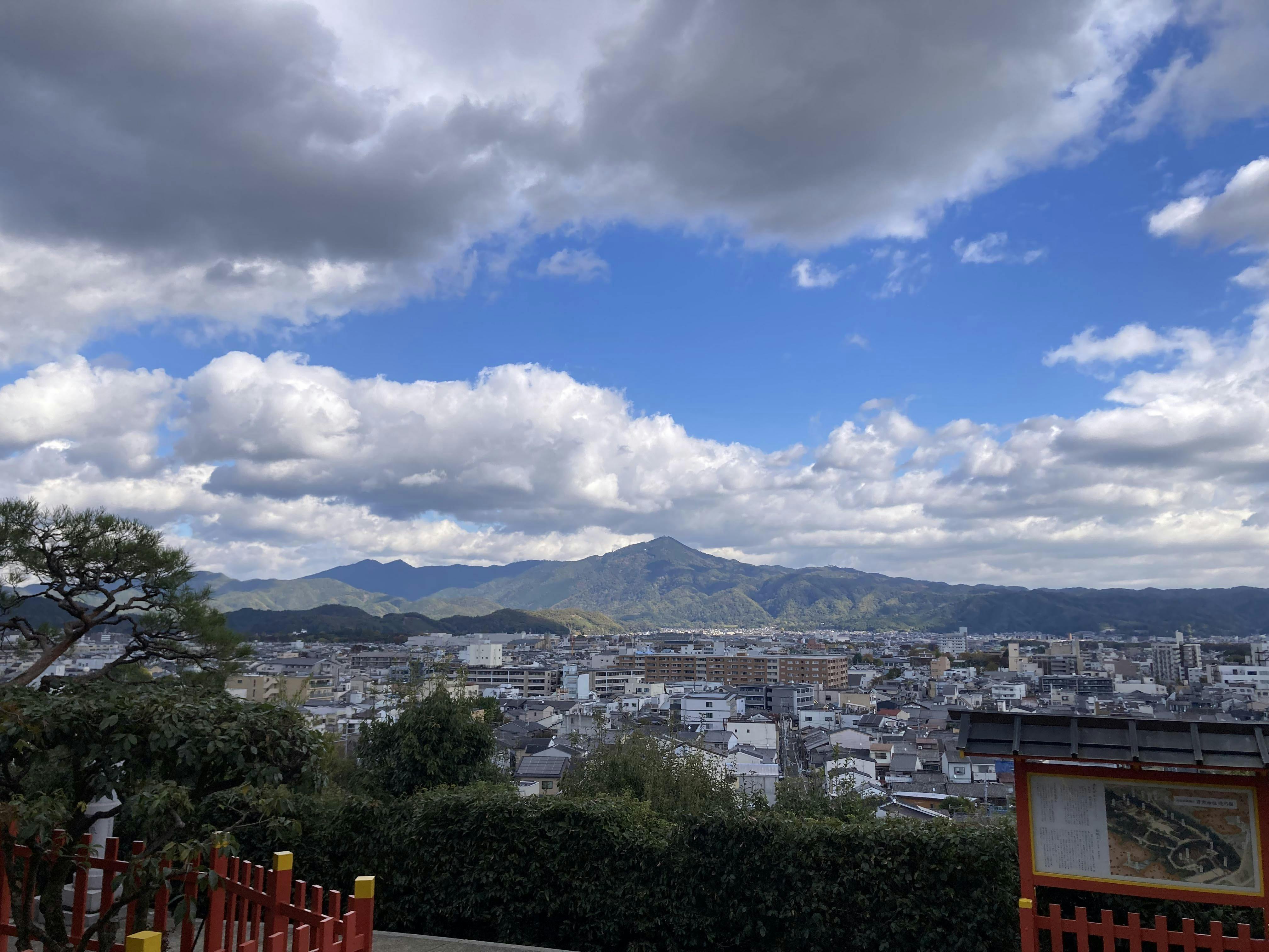建勲神社が鎮座する船岡山より比叡山方面を眺めます。