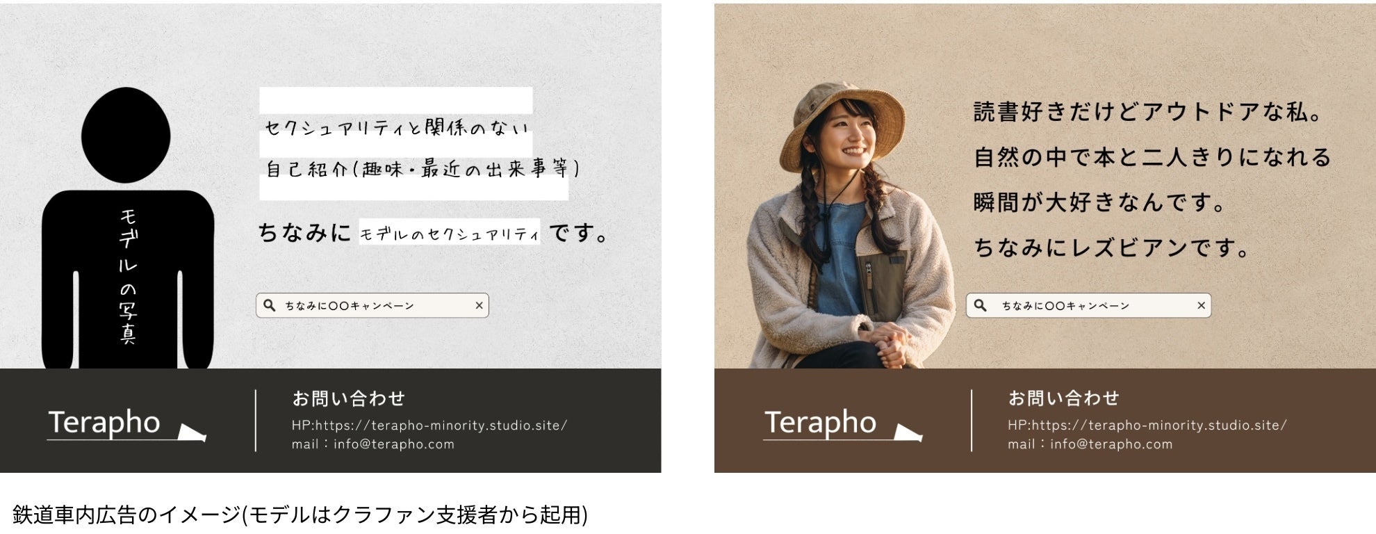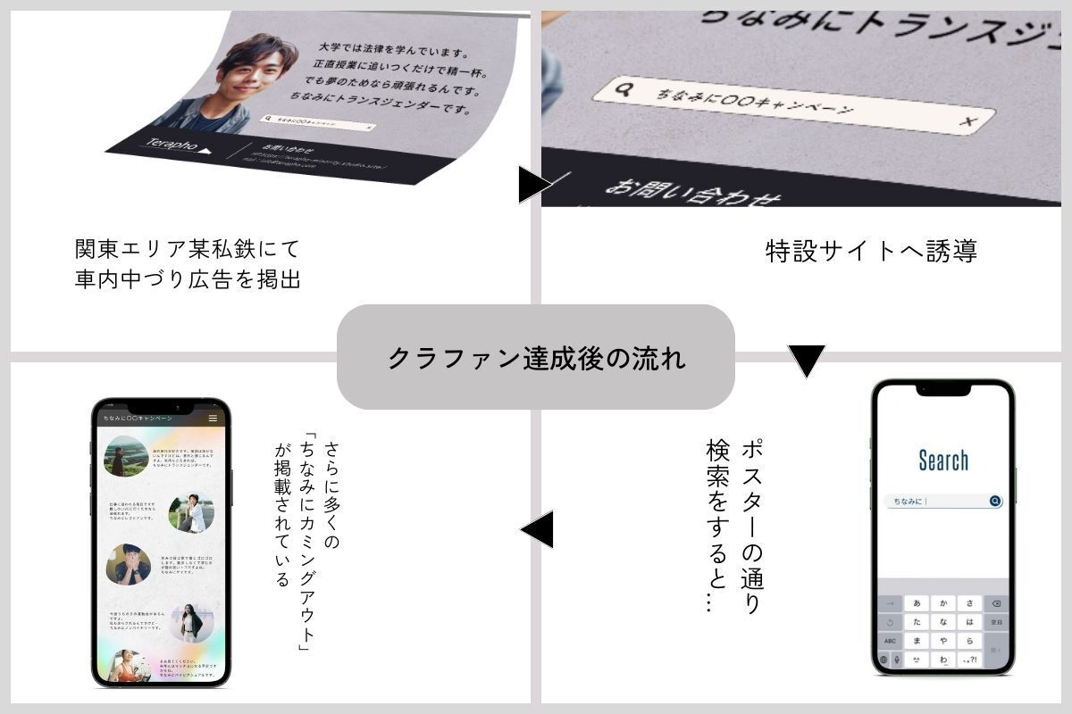 クラファン支援者さまから集めた「ありふれた自己紹介・『ちなみに…』で始まるカミングアウト」を鉄道広告やWEBサイトで公開するキャンペーンです。