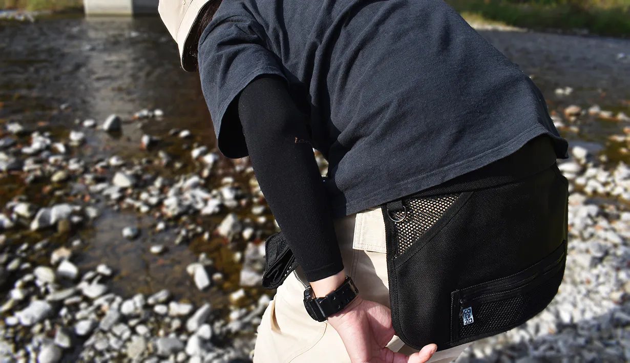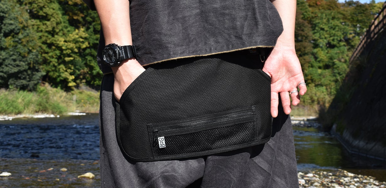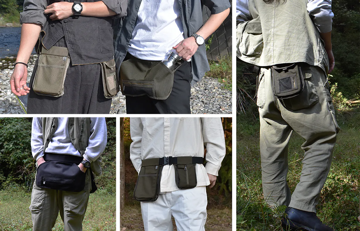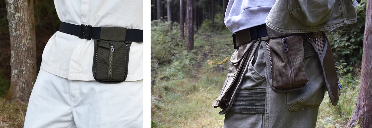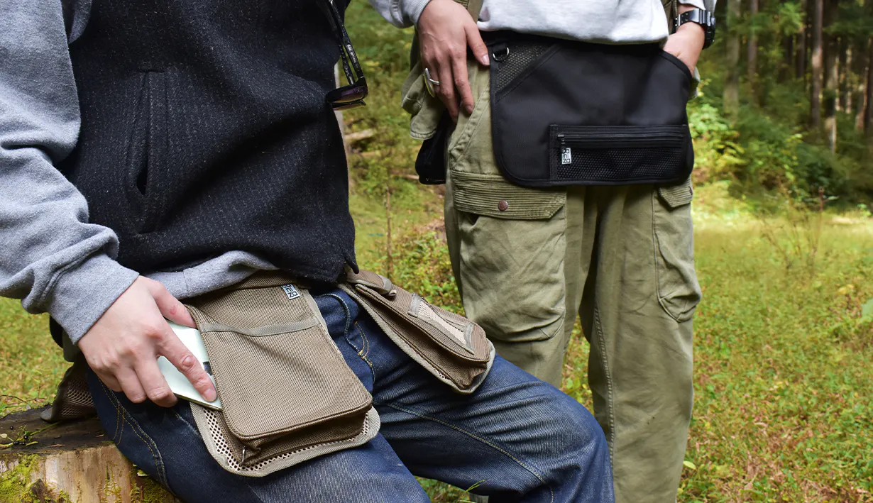 必要最低限のモノをポケットに入れ、腰につけるこのスタイルにより従来のバッグやリュックでは得られなかった快適さを実現しました。