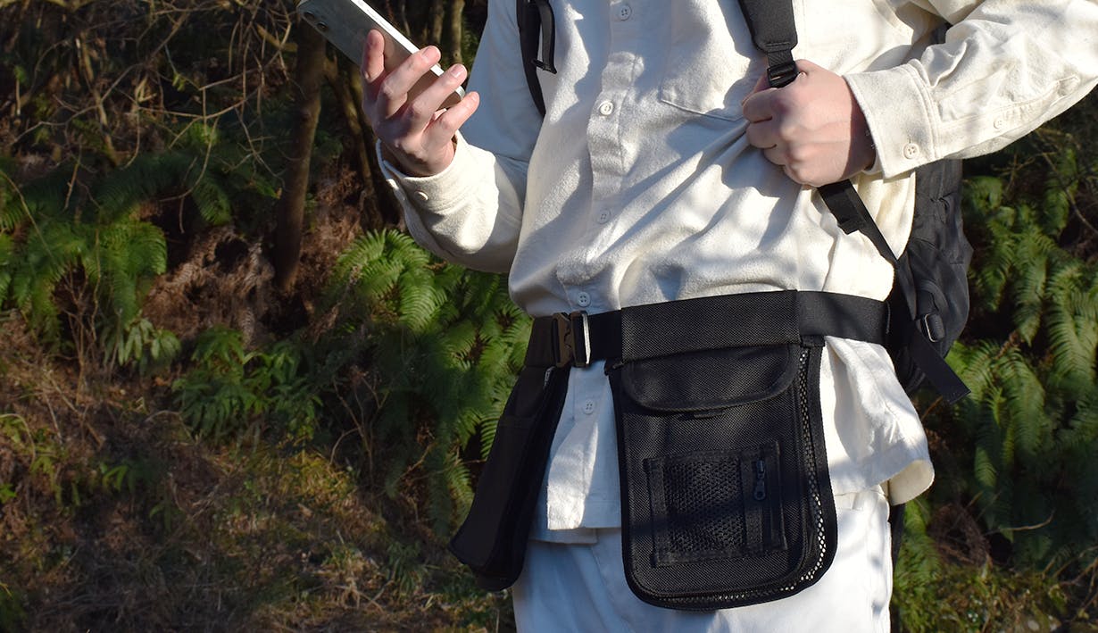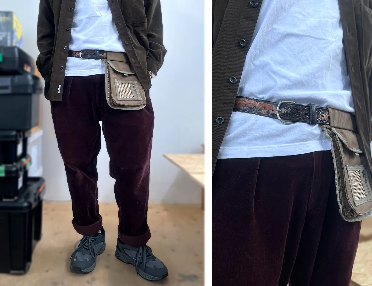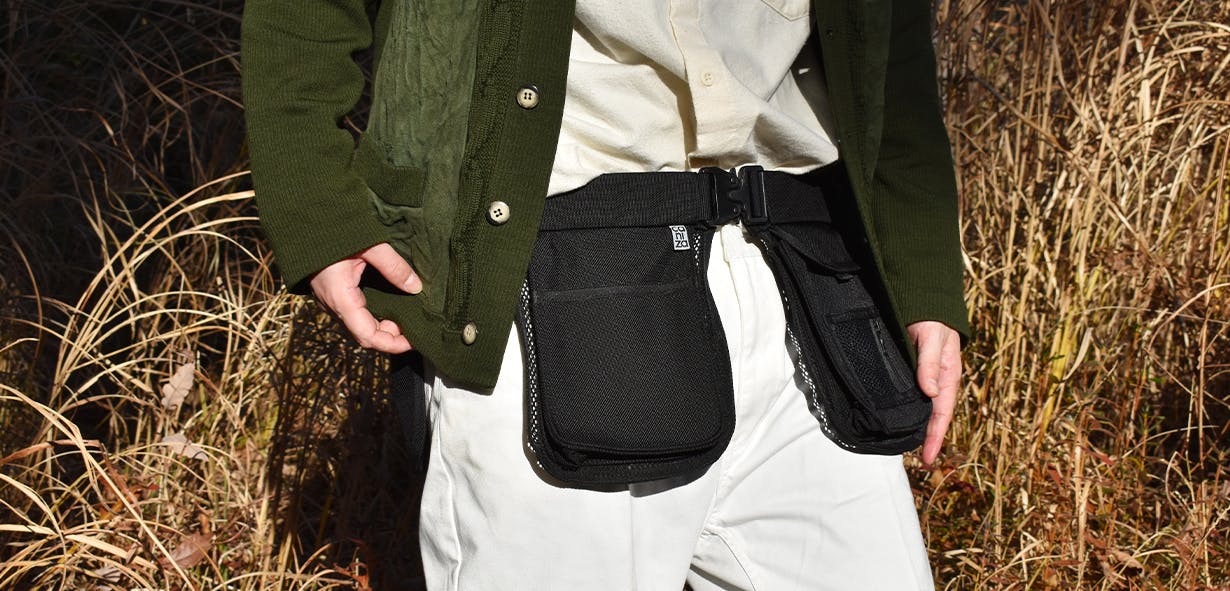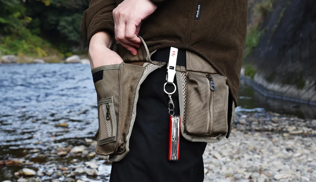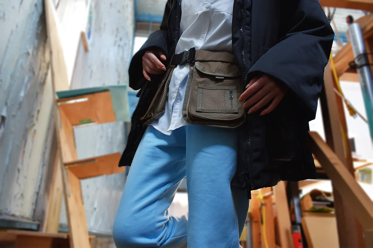 必要最低限のモノをポケットに入れ、腰につけるこのスタイルにより従来のバッグやリュックでは得られなかった快適さを実現しました。
