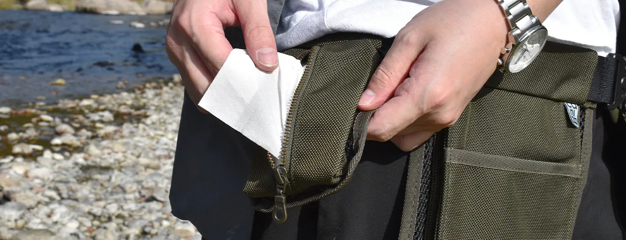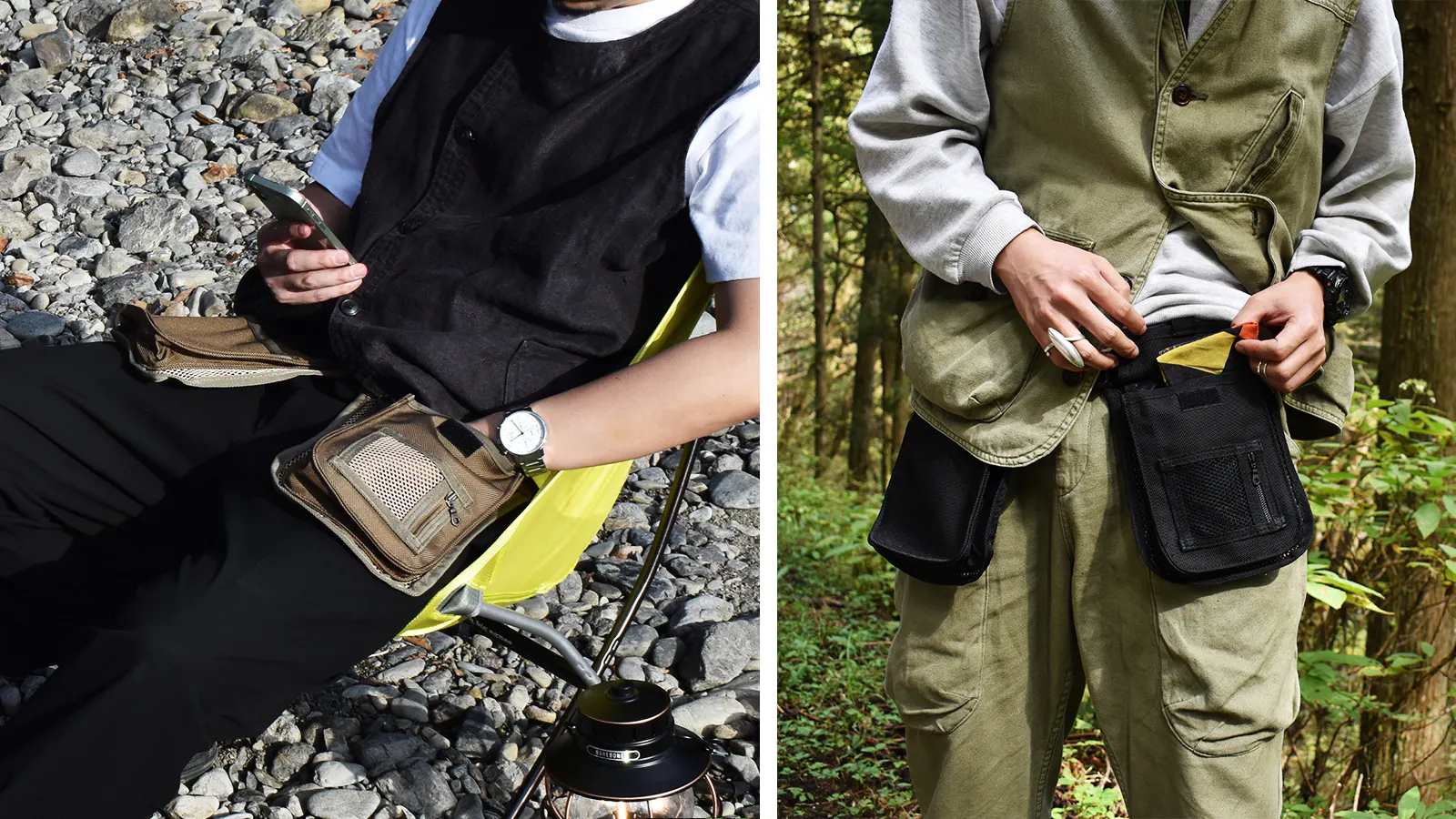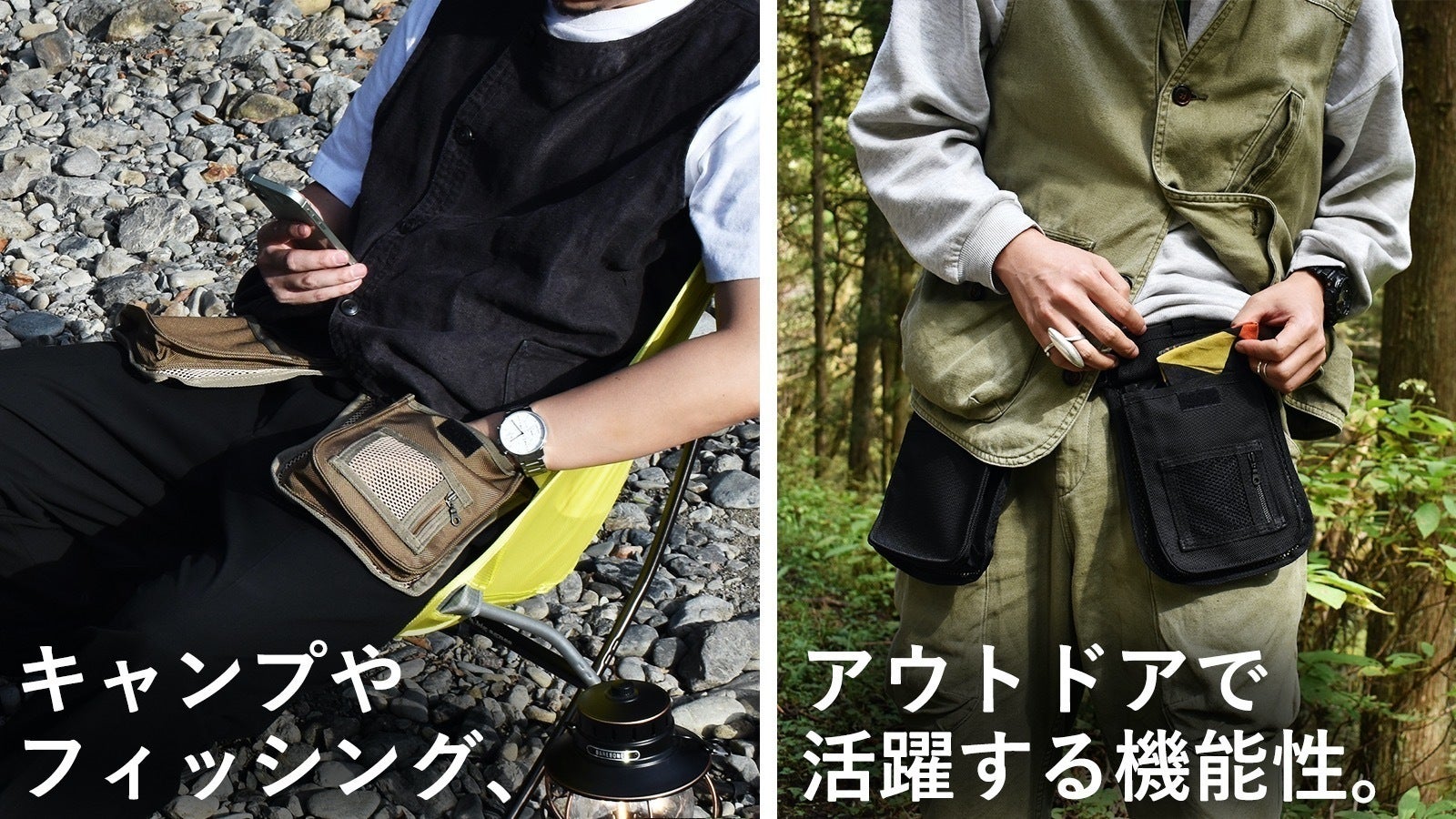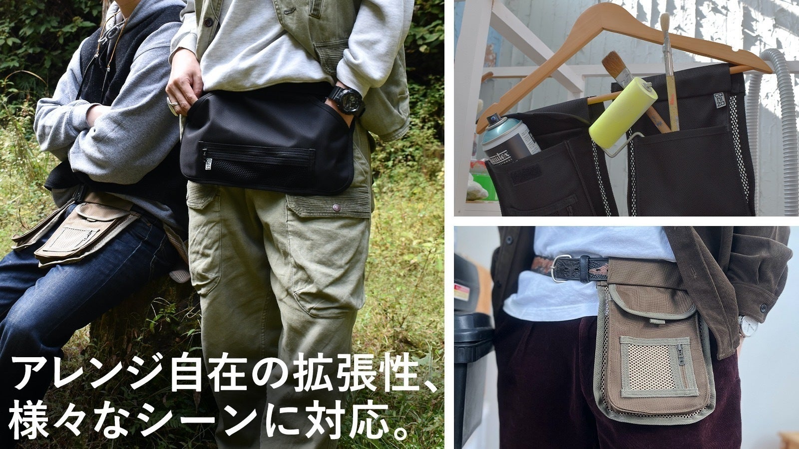必要最低限のモノをポケットに入れ、腰につけるこのスタイルにより従来のバッグやリュックでは得られなかった快適さを実現しました。