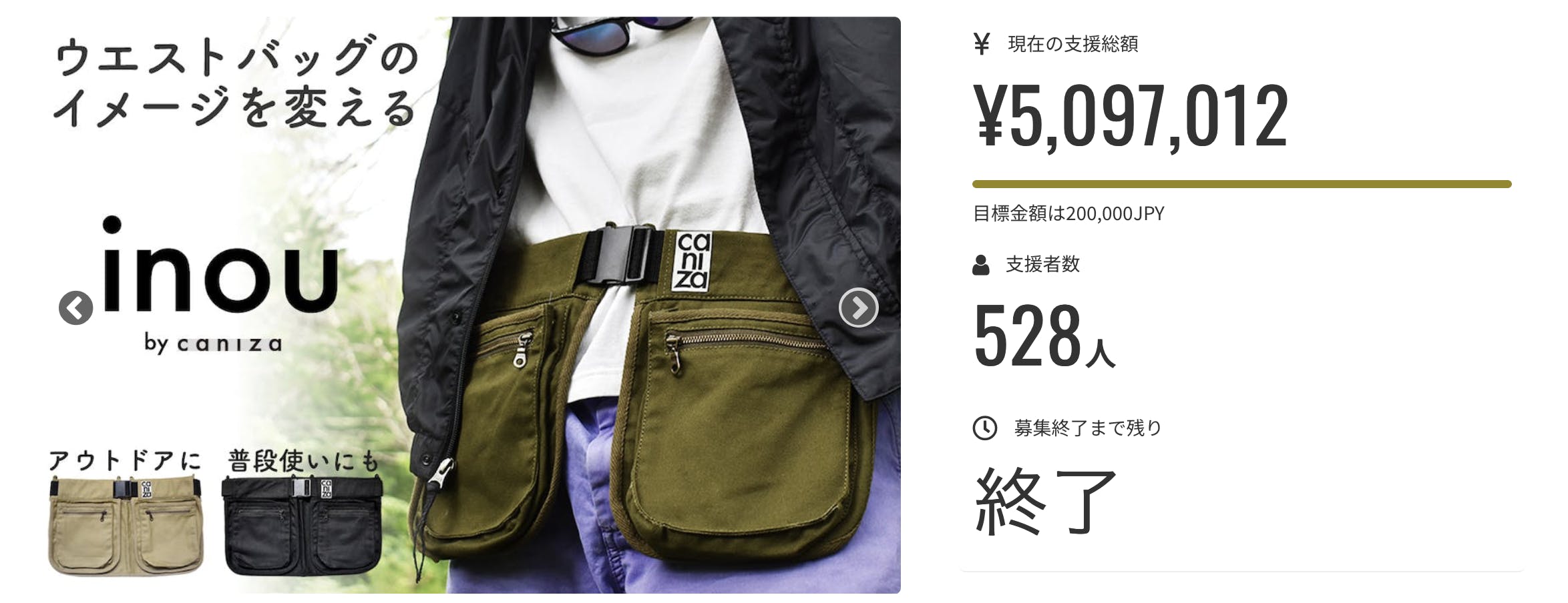 2023/07/10 21:46プロジェクトの公開も残すところ2時間となりました!そして、この度は「inou」リニューアル版のプロジェクトに多数のご支援を賜り誠にありがとうございました。皆様のおかげで当初の目標を大きく上回る達成率で終えることができそうです。満を辞してのリニューアルでしたのでメンバー一同感無量です。引き続きよいモノを生み出していけるよう精進して参りますのでどうぞ宜しくお願いいたします。また、リターンのご発送は予定通り順次発送作業に入りますので今週末〜来週中には全ての支援者様へお届け完了出来る見込みです。責任を持ってお届けいたしますのでもう少々お待ち下さいませ。皆さま本当にありがとうございました!caniza もっと見る