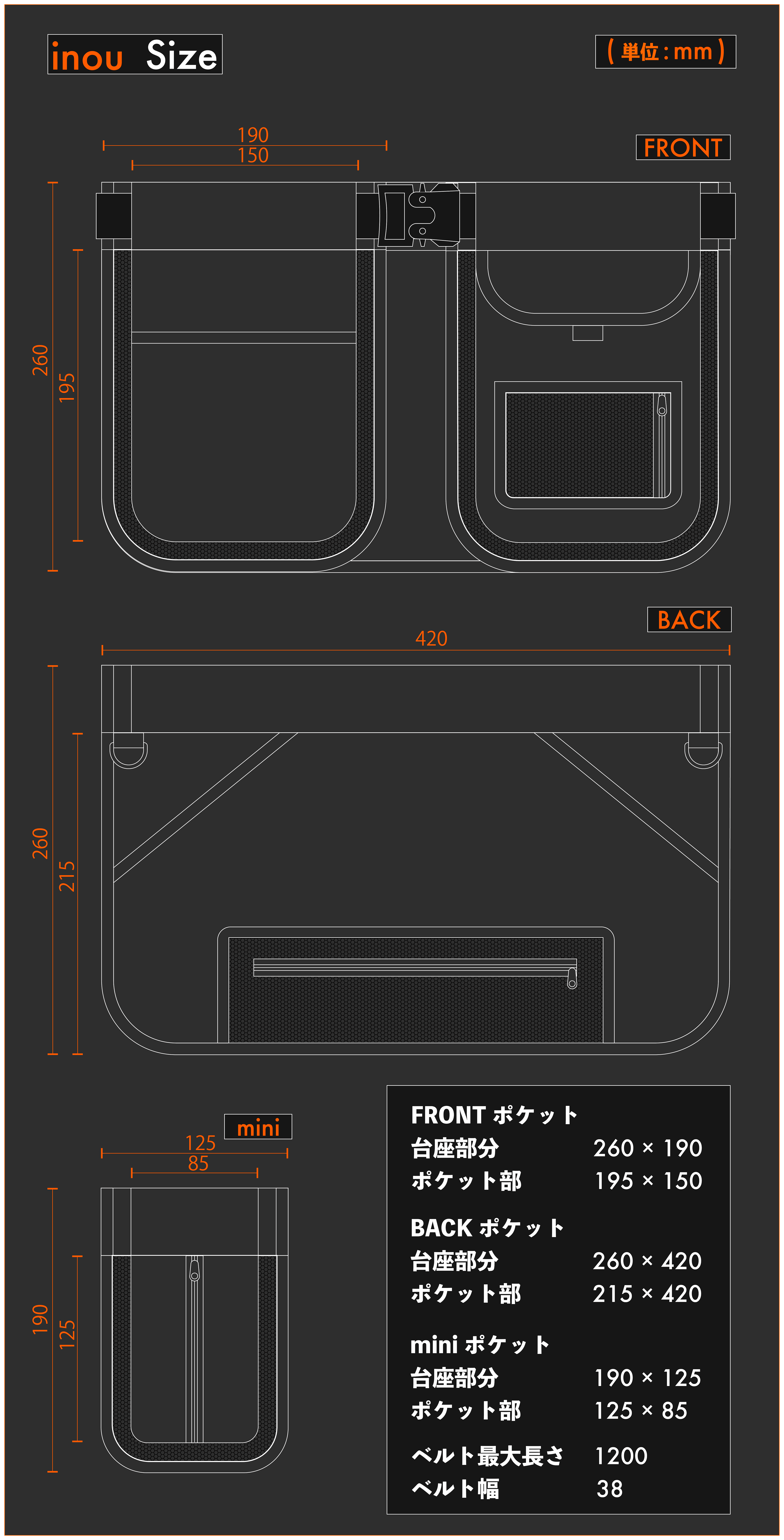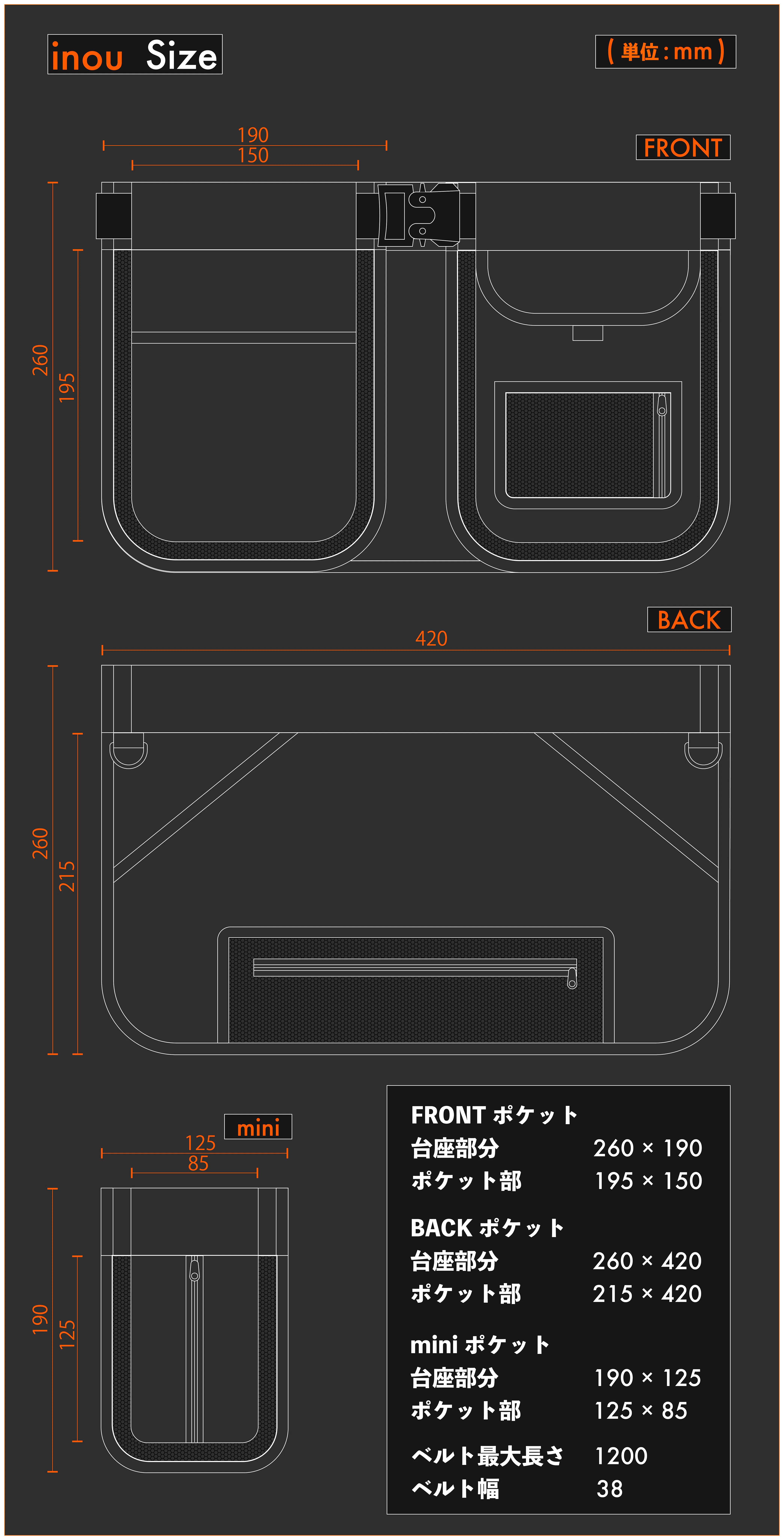 inouは4種類のポケットとベルトで構成されています。