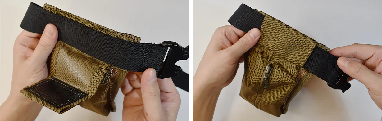 ②ベルトループがオープンになるのでポケットをベルトから外す