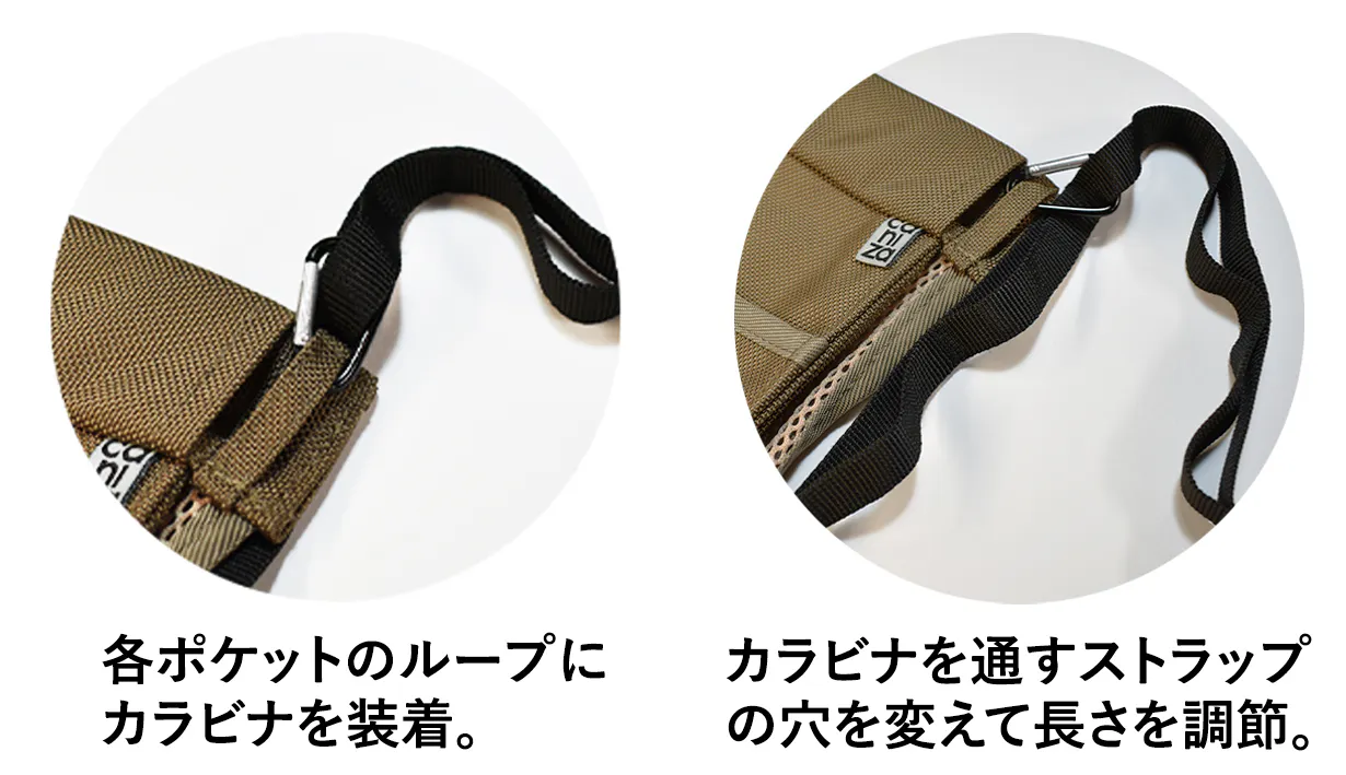 シーンやコーディネートに応じて自由にポケットの数や組み合わせを調整して、理想の外出のスタイルを見つけてください。