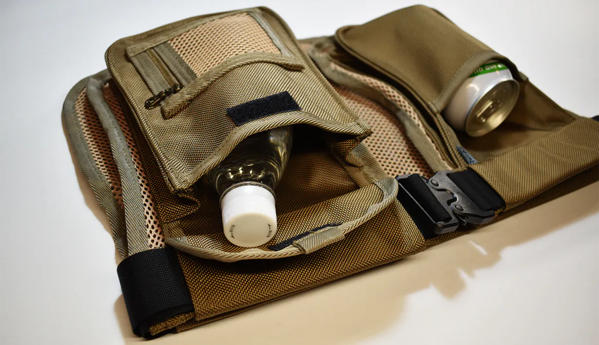 500mlのペットボトルや缶飲料まで収まってしまうほどの大容量ですが、上半身に負担がなく腰で荷物を支えるため重さを感じづらいのも長所です。