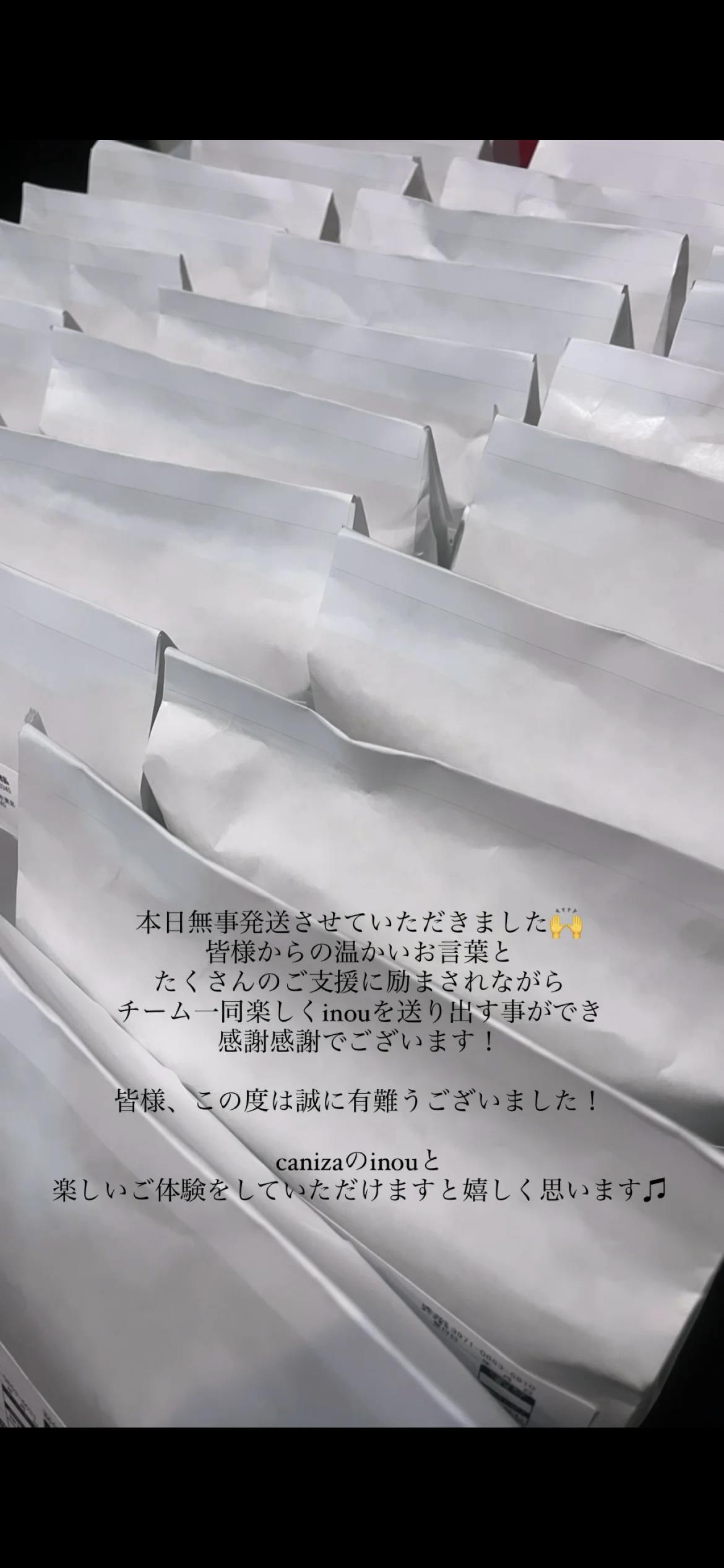 2023/07/15 16:44ご支援者の皆様この度はご支援を賜りまして誠にありがとうございました。本日全ての出荷が完了いたしました!ヤマト運輸にて近日中にご到着する予定です。長らくお待たせいたしました。本製品を通して皆様が新しい外出スタイルをご体験いただけますこと、チーム一同心より願っております。梱包・発送には万全の注意を払っておりますが万が一ご注文のお色と異なるものや初期不良品、商品の不着等がございましたら下記のメールアドレスまでご連絡ください。info@caniza.jp※商品ご到着より1週間以内にご連絡をお願いいたします。最後に、この度はcanizaのリニューアル版inouをお手に取ってくださり誠にありがとうございました!今後も皆様に新たなご体験をご提供できますよう努めてまいりますのであたたかく御見守りいただけますと幸いでございます。canizaチーム一同 もっと見る
