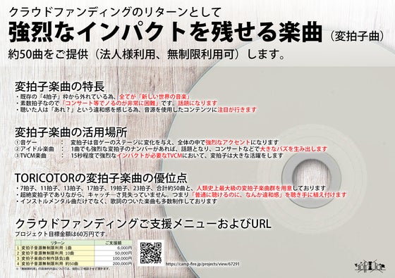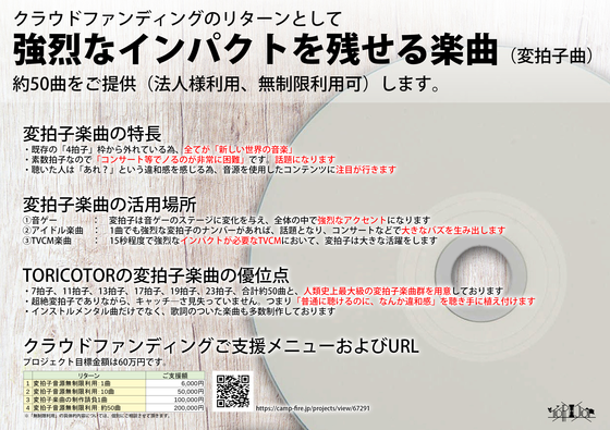 「変拍子」の様なニッチな世界を広めるには、クラウドファンディングが最適であると考えまし た。
