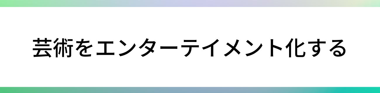 誤解を恐れずに言うならば、私たちは芸術活動をエンターテイメント化したい。その心は、芸術を提供する側も、提供される側も、ごく一部の人だけでなくて、一般の人が日常で感じられる世の中にしたいと本気で思ってるからです。