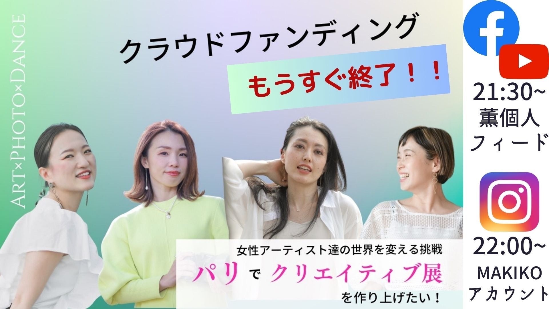 2023/06/13 20:31「40代女性アーティスト達の世界を変える挑戦 パリでクリエイティブ展を作り上げたい」総支援額 2,179,800円 総支援数 138人で、終了しました。クラウドファンディングへの応援、心を向けてくださった全てのみなさま、本当に本当にありがとうございました。私たち一人ひとりからのメッセージを受け取ってください。ーーーーーーーーーーーーー(MAKIKO CREATION 倉永真紀子より)みなさまからの応援に、どれほど引っ張ってもらったことか。終了直前、張り詰めていたものが溢れ出して、涙が止まりませんでした。でも、涙が止まらないほどに本気で取り組めることがあることは今となっては誇りです。この挑戦はアーティストマキコとしてだけではなく、一人の人間としての人生の中での挑戦にもリンクしていました。だからこそいろんな思いや弱さに向き合いながら、諦めたくなったときも、みなさんからの言葉や思いは届いているんだなという確信。本当はどうしたいかという軸がいつも私を強くしてくれました。そしていただいたメッセージから感じていた安心感はいつも私を私でいさせてくれました。目標を達成できなかったことは本当に悔しいけど、すごく良い経験になりました。新しい景色が見えました。ここからまた、みなさまとともにパリのステージへと進んでいきます。進み続ける私たちの表現をこれからも楽しんでもらえたら嬉しいです。本当に、本当にありがとうございます!!ーーーーー(小堀美沙紀より)今回は、4人でチームとしてのクラウドファンディング、目指す先は一緒でも、乗る船の名前やら、コンセプトやら、航路やら、持ち物が定まらない感じ。だから、実はやらない方がいいのかもと思った始まりもあったんです。だからこそ、蓋を開けたら思うように進まない状況。癖がありすぎたアーティスト達のリターン笑3つの芯が立つからこその揺らぎ、それでも、やると決めたのだし、応援してくれる人たちがいるし、私たちは伝えたいことがあるからと最後まで何ができるか本気になれた全力疾走。「4人で頑張る姿をみんな待ってたよ」って最後のライブで頂いたコメントがなんだかすごく胸に沁みました。目標達成には至らなかったけど、高い目標をつくったからこそ、今ココで、何ができる?と目の前に目標をつくって、ひたすらひたすら伝え続けられました。それを受け取ってくれて、頑張る姿を見守ってくれて、パリで展覧会をすること、好きなことを表現し続けることを"希望"としとくれた人がいてくれて、このような結果を出せたこと、全員からのお気持ちを含めて、今、すごく誇りに思っています。それが私たちのやりきった今の景色。描いたようにできなくても諦めそうになっても手を足を動かし続けてよかったです。いろんな人の夢と希望をたっぷりこめて「終わりは始まり」今日からは広げた分の何百人ものエネルギーをもって、9月のパリまで4人で創り続けます♡ーーーーーーー(村田薫より)私の記憶によると、最終3日で約100万のご支援をいただいたんじゃないかな??ご支援してくださったのはもちろん、シェアをしてくださった方もたくさんいてね、最後の1分まで見守ってくださってた方達にも感謝の言葉しか出てきません。 掲げた金額には届かなかったけど、今回のクラウドファンディングではたくさんの学びがありました! 本当に経験から得られるものは大きいな!!!だから伝えていこう。 Don't think, feel!考えるな!感じろ!! 遅いことなんてこれっぽっちもない!やりたい!と思ったことを諦めるんじゃなくてどうやったら出来るか!を考えて叶えていこう。 みんなで♡ さぁーーここからは私たちは準備と、大いに癖ありリターンたち(笑)を真心込めてお届けしてまいります!! 応援本当にありがとうございましたっ!!!ーーーーー(武田えいこより)今回私は、3人のアーティストをまとめるディレクション役として、最初から最後まで一緒に関わらせてもらいました。ですが、本当にまとまらない3人。笑だけど、今となってはそれがいいんですって思ってます。自分の表現をどこまでも貫くのがアーティストですから。どこまでも正直で、猪突猛進で、最後の最後まで諦めが悪かった!そんな私たちを誇りに思います。私一人じゃ到底見れなかったであろう世界を、4人で一緒にいたからこそ見せてもらいました。最後の1分前まで止まらなかった皆さんからのご支援、数えきれないほどのシェア。おひとりおひとりのお顔を浮かべるたびに、今までなかなか前に進まずに悩んでたのがすべて嘘だったかのように、私たちの結束を固めてくれました。なんてあたたかいんだ、なんてやさしいんだ、と幸せを噛み締めながらのエンディングを迎えることができ、本当にやってよかったと。祭りのあと感は全くなく、また今日からがんばろうって清々しい気持ち。今後とも私と一緒に、3人の一番の応援者でいてくださいね。どうぞよろしくお願いします。ーーーーーーーーーー最後にもう一