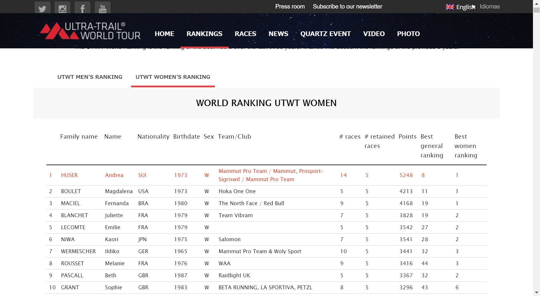 ウルトラトレイルワールドツアー(UTWT)のランキング