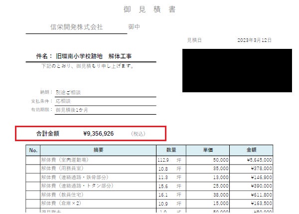 ちょっと!この見積書の金額、見てもらえませんか?!1,000万円近くするこの費用、古くなった体育館の取り壊しにかかる費用なんです。マメノキドッグパークをつくるうえで、今とくに問題になっているのが「駐車場スペースの整備」。旧環南小学校をドッグパークに作り替えた場合に、今のままだとお客さまが車を停めるスペースが全くないのが問題になっています。皆さんに遊びに来ていただくための駐車スペースを確保するためには、いま残っている古い体育館を更地にして駐車場に整備する必要があります。しかし、この費用を富津市では負担することはできないのが現状です。