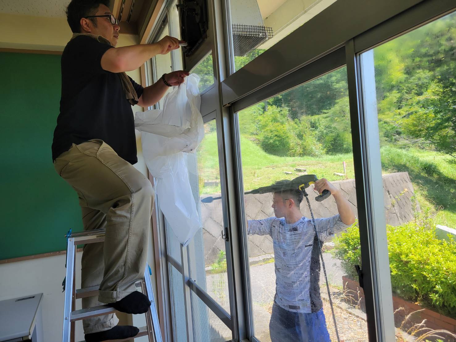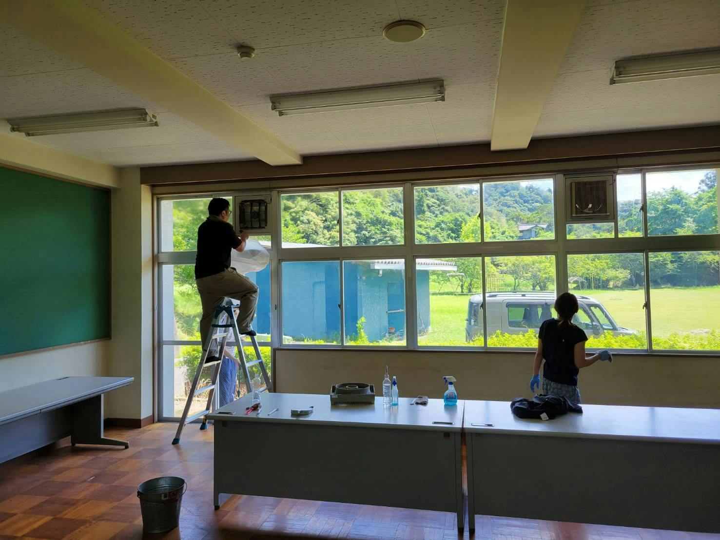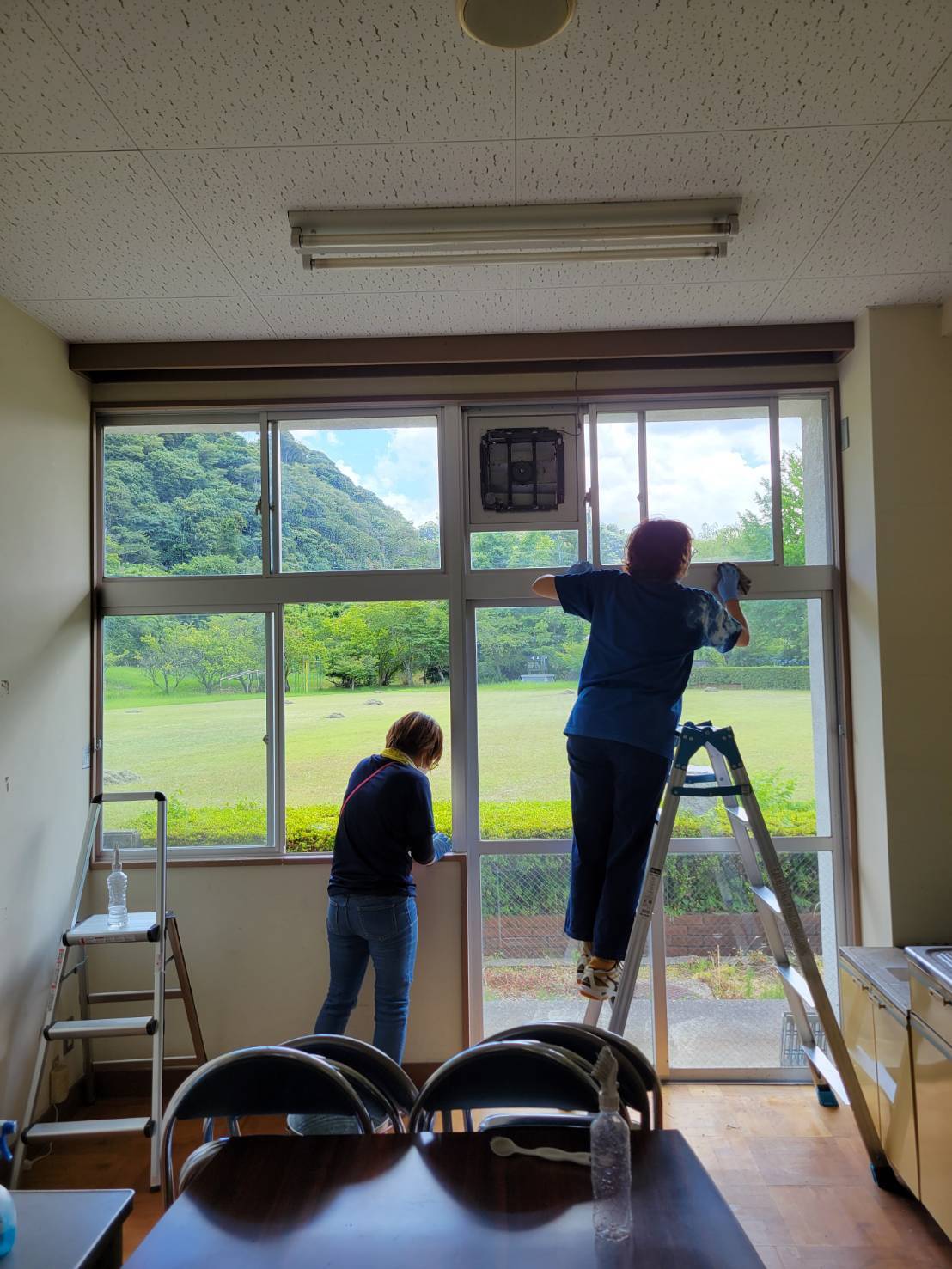 掃除作業では、庭や教室を中心に、落ち葉やゴミの片付けから始まり、草むしり、窓ふきに換気扇の清掃まで行うことができました。