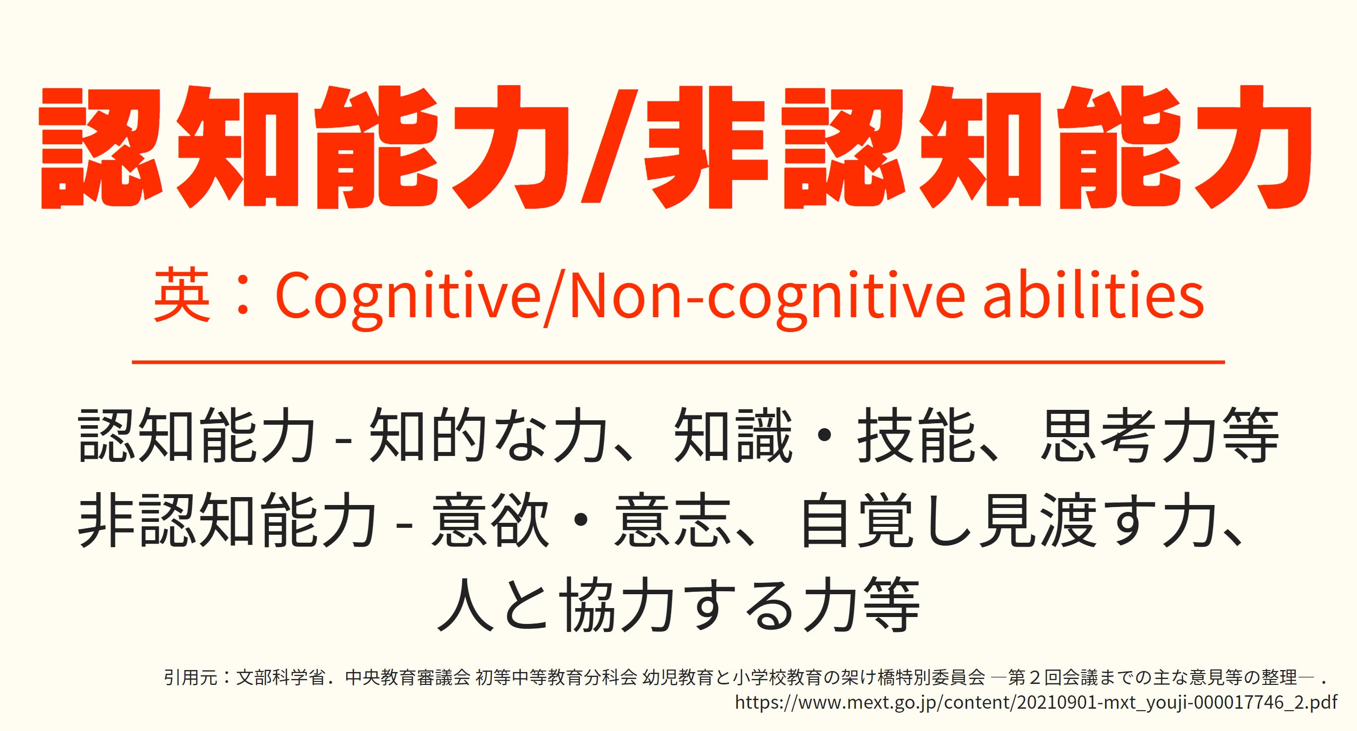 幼少期の教育においては、特に認知能力と非認知能力のバランスが求められます。英語能力は認知能力、コミュニケーション能力は非認知能力と一般的に割り振ることができるので、相性がとても良いのです。